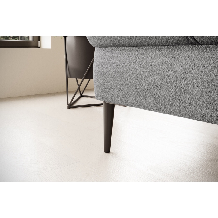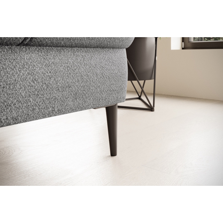 The Denver L corner sofa from the Wersal manufacturer is an expansive sofa set designed with a modern interior in mind. Its simple body complemented by vertical stitching gives it a structured look that blends well with a variety of arrangements. It gently floats above the floor thanks to its slender metal legs in black, which contributes to its visual lightness.