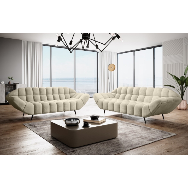 This model is distinguished by its original, modern shape, which gives the sofa an artistic character. The original form is further emphasised by decorative quilting placed on both the seat and backrest, which introduces an effect of depth and spaciousness. This piece of furniture thus becomes not only a place to rest, but also an important aesthetic accent in the interior.