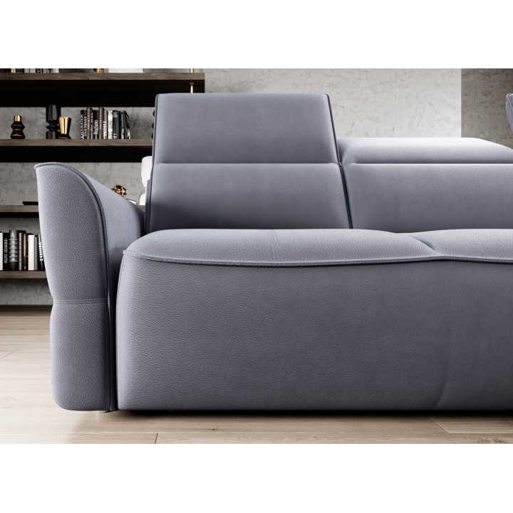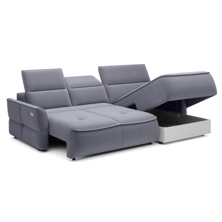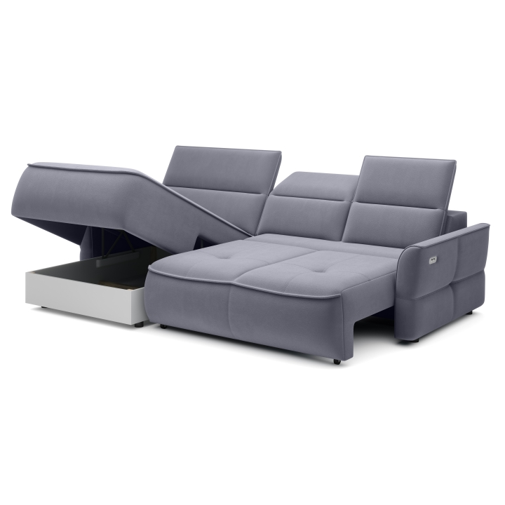 A feature that distinguishes this model is the electric seat extension. This mechanism allows for a significant increase in depth, by up to 60 cm, which is unique compared to other similar furniture. The standard seat depth is 62 cm, and it reaches up to 120 cm after maximum extension. The electric mechanism works smoothly and effortlessly, guaranteeing comfortable use without having to reposition the entire piece of furniture.