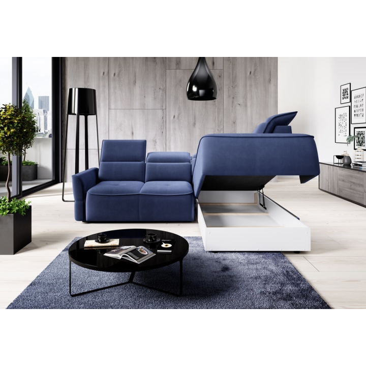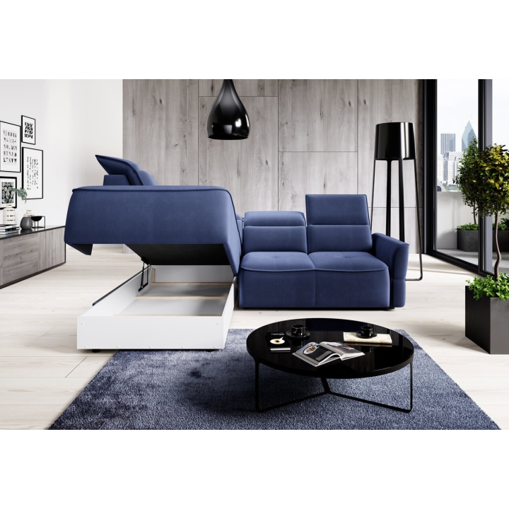 One of the main advantages of this model is the electric seat extension, which allows it to be extended by an additional 60 cm. As standard, the seat depth is 62 cm, but when extended it reaches as much as 120 cm, providing comfortable conditions for relaxation. The extension function is extremely easy to use and works reliably without having to move the entire piece of furniture. In addition, the corner sofa can function as a bed with a sleeping surface of 195 x 115 cm, making it the perfect solution for rooms where space saving and functionality are important.