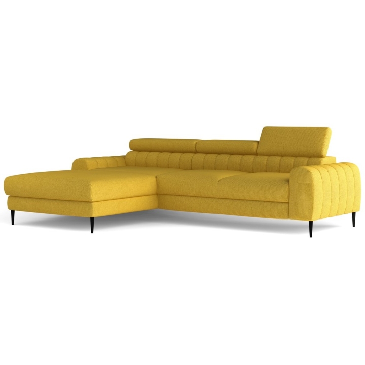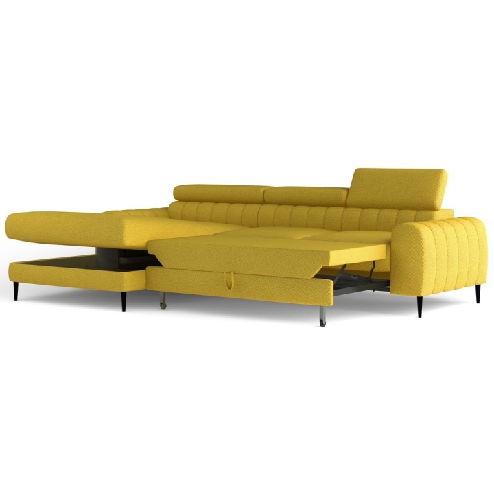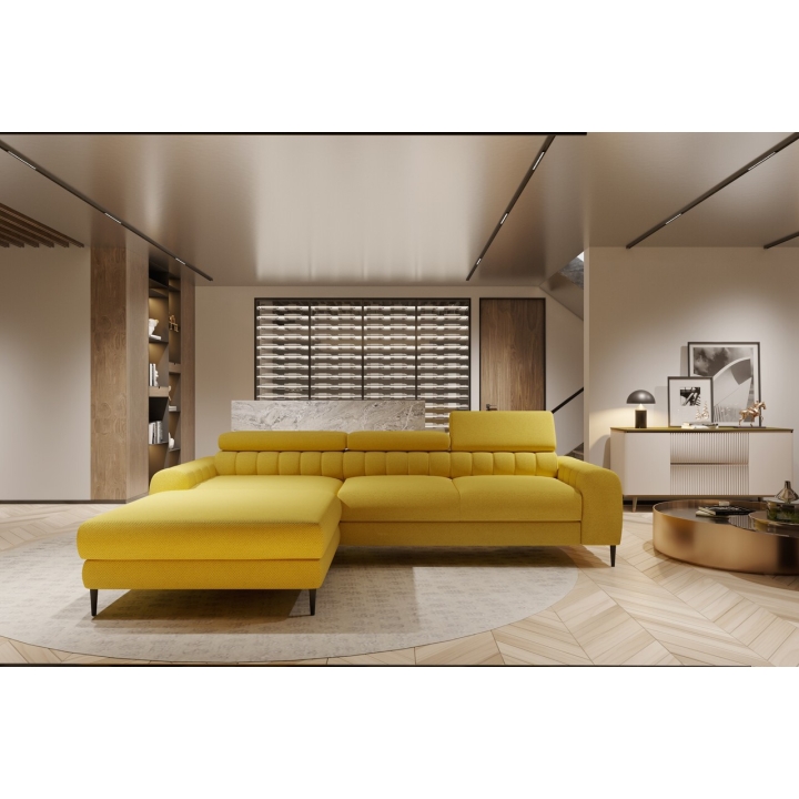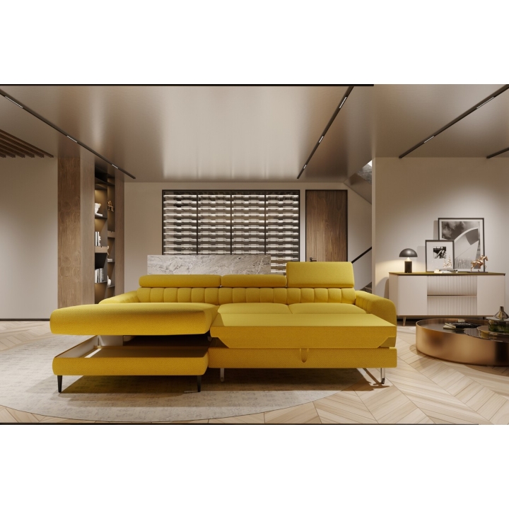 The model features a bedding container, measuring 11 x 69 x 136 cm, discreetly concealed in the structure. The functionality of the piece of furniture is also emphasised by the movable headrest - 3 pieces, making it possible to adjust the backrest to the user's individual preferences. The corner sofa is available in a right and left-hand version, which makes it easy to match with the interior layout.