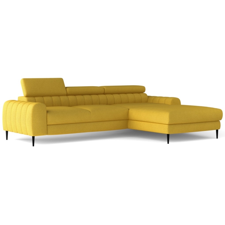 The model features a bedding container, measuring 11 x 69 x 136 cm, discreetly concealed in the structure. The functionality of the piece of furniture is also emphasised by the movable headrest - 3 pieces, making it possible to adjust the backrest to the user's individual preferences. The corner sofa is available in a right and left-hand version, which makes it easy to match with the interior layout.