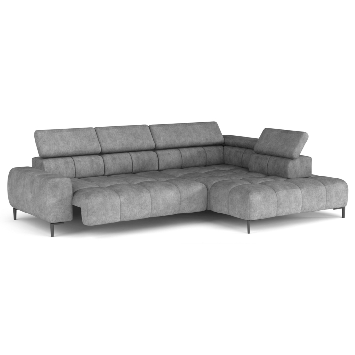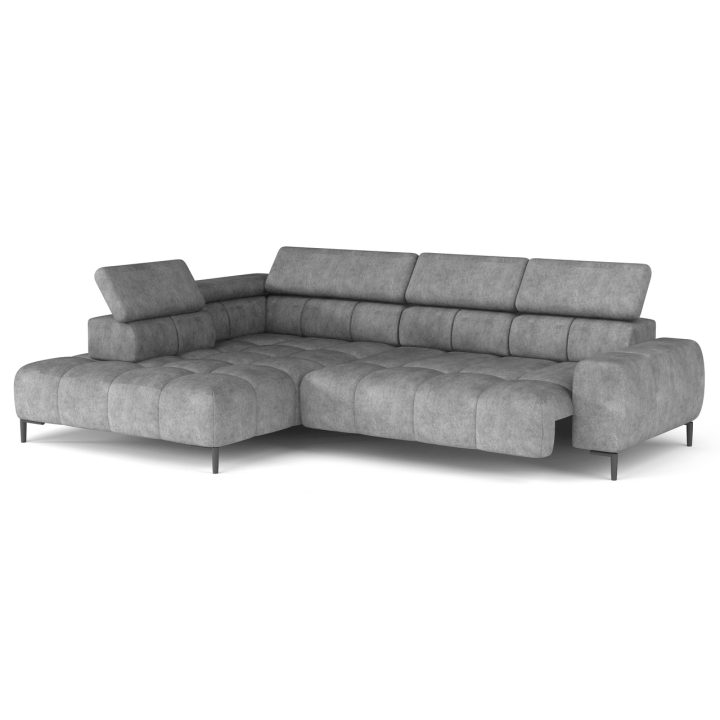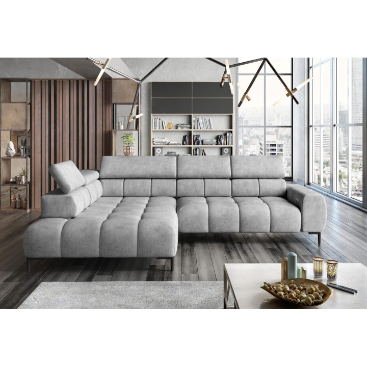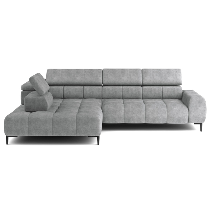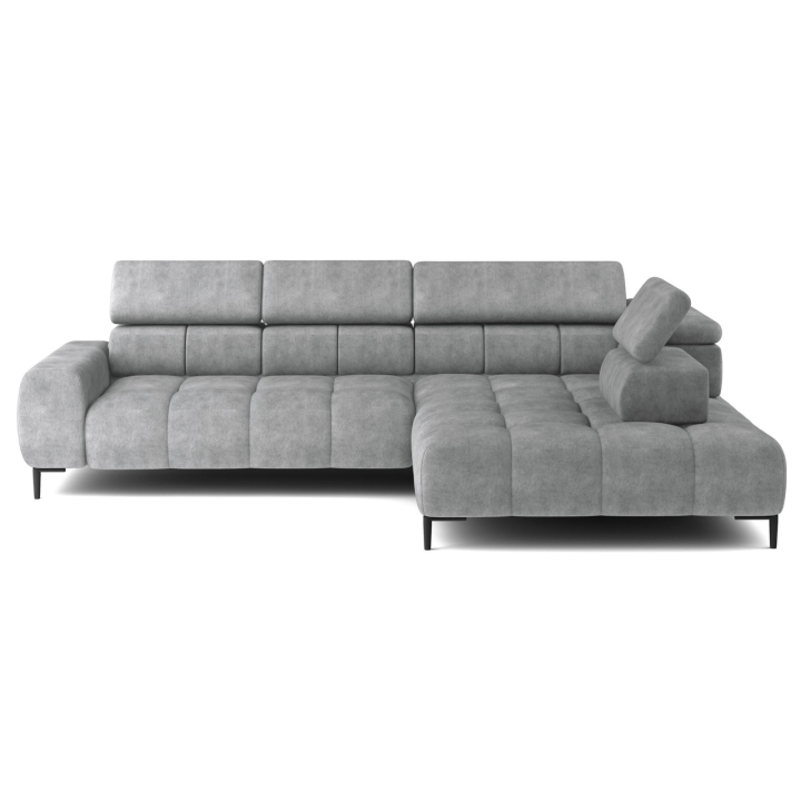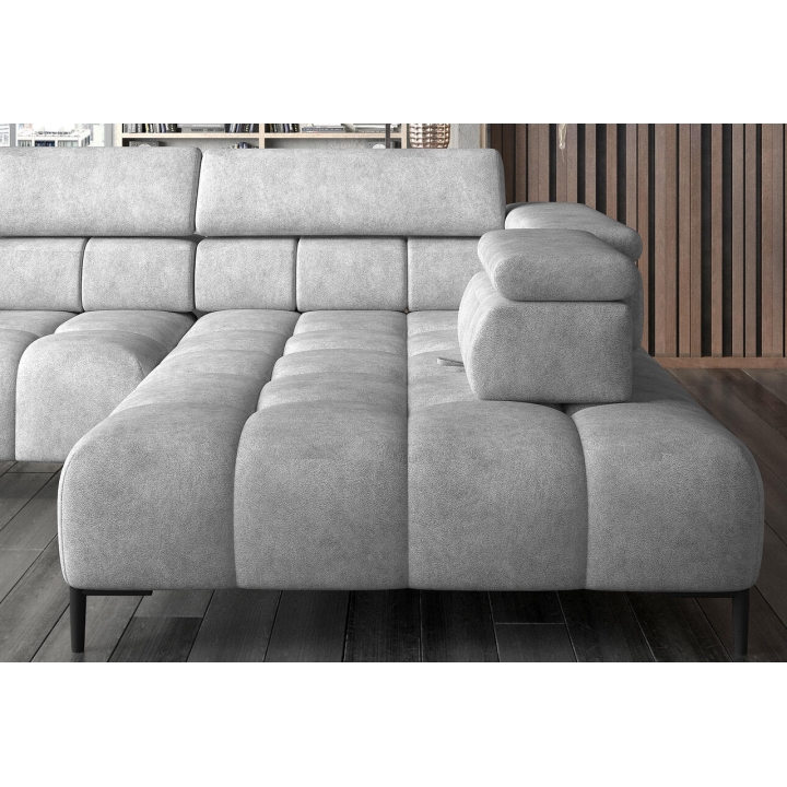 The whole is set on solid, slender metal legs in black, which not only add visual lightness, but also make it easier to keep the underneath of the furniture tidy. This detail, seemingly minor, reinforces the expressive silhouette of the corner sofa, giving it sophistication. There is a choice of left- or right-sided versions, making the furniture easy to adapt to a particular interior configuration.