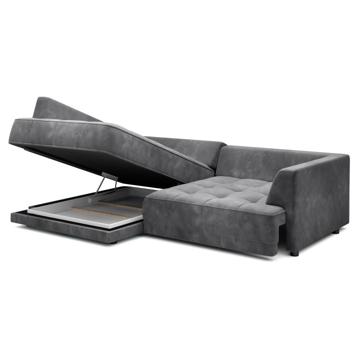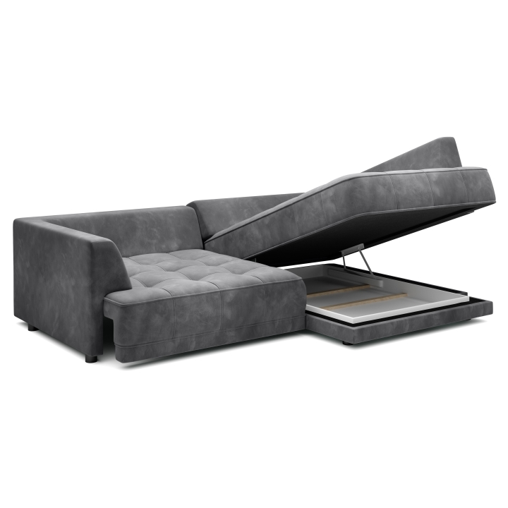 The seat, which measures 59/79/103 cm deep, and is 44 cm high, has been designed for long-term use. The ottoman, which measures 135 cm wide, provides the ideal place to rest during the day, promoting relaxation. The pull-out mechanism also conceals an additional function - a 125x220 cm sleeping surface, making the corner sofa also suitable as an occasional bed.