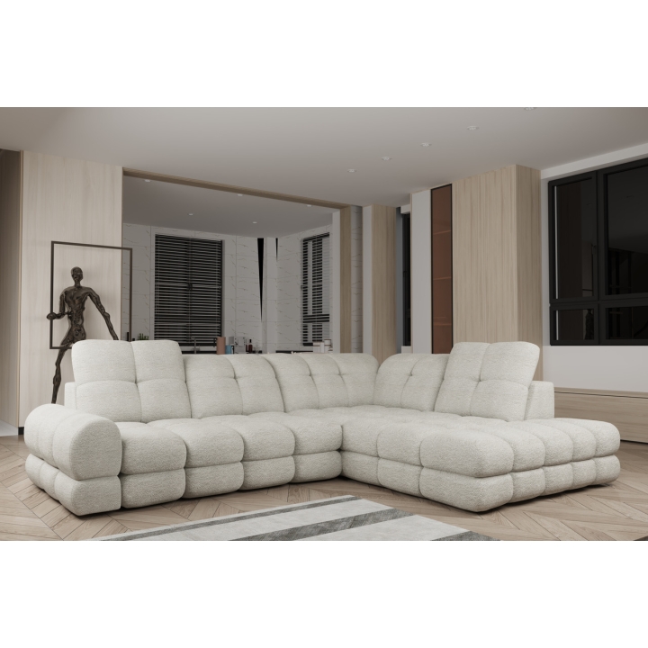 Thanks to the extensive configurator, it is possible to customise the upholstery to suit individual aesthetic preferences. There is a choice of dozens of fabrics with different textures, colours and properties, allowing you to easily incorporate the corner sofa into your intended design concept. Dimensions given may differ by +/- 2% from the declared values due to the specific nature of upholstered furniture.