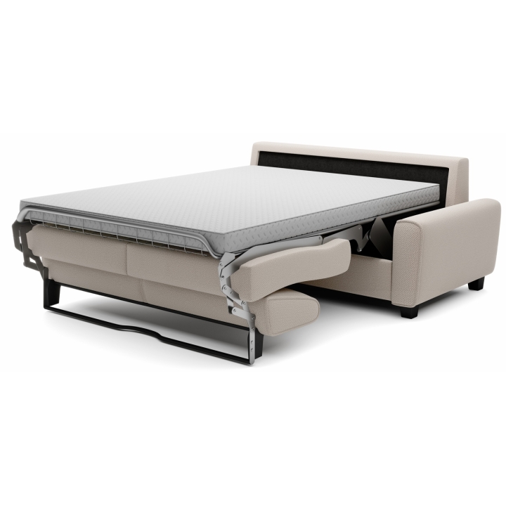 One of the distinguishing features of the Capri S120 sofa is that it can be converted into a bed thanks to the Italian system. It unfolds with the mattress hidden inside. When unfolded, we obtain a sleeping surface of 120x190 cm. This mechanism is a comfortable solution for occasional sleepovers, but will also work well as an everyday sleeping area in smaller flats.