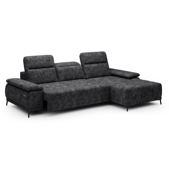 The standard depth of the seat is 61 cm, but thanks to the electric extension mechanism it can be increased up to 87 cm. The seat height is 45 cm, which provides adequate support for the legs. The filling of the seat is a combination of corrugated spring, elastic bands, N30 foam and a layer of oatmeal, while the backrest uses T-1818 foam, elastic band and oatmeal, which translates into solidity and comfort.