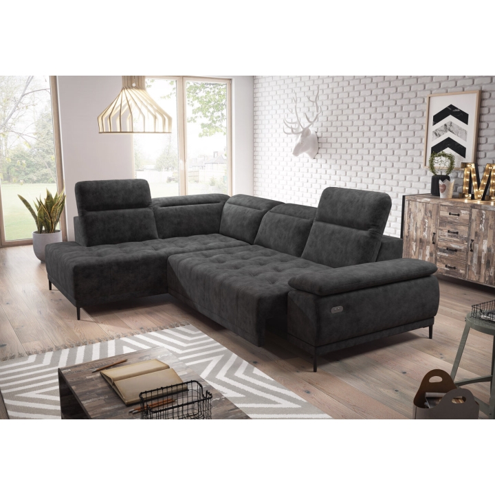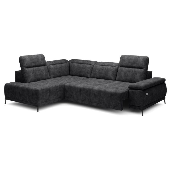 The piece of furniture is equipped with movable headrests, which allow you to precisely adjust the height of the backrest for your head, providing greater comfort during daily relaxation. In addition, there is an option to change the depth of the seat, which allows you to adjust the furniture to your own relaxation preferences. The structure is supported by high metal legs in black color, which not only emphasize its contemporary character, but also make it easier to keep the space under the furniture tidy.