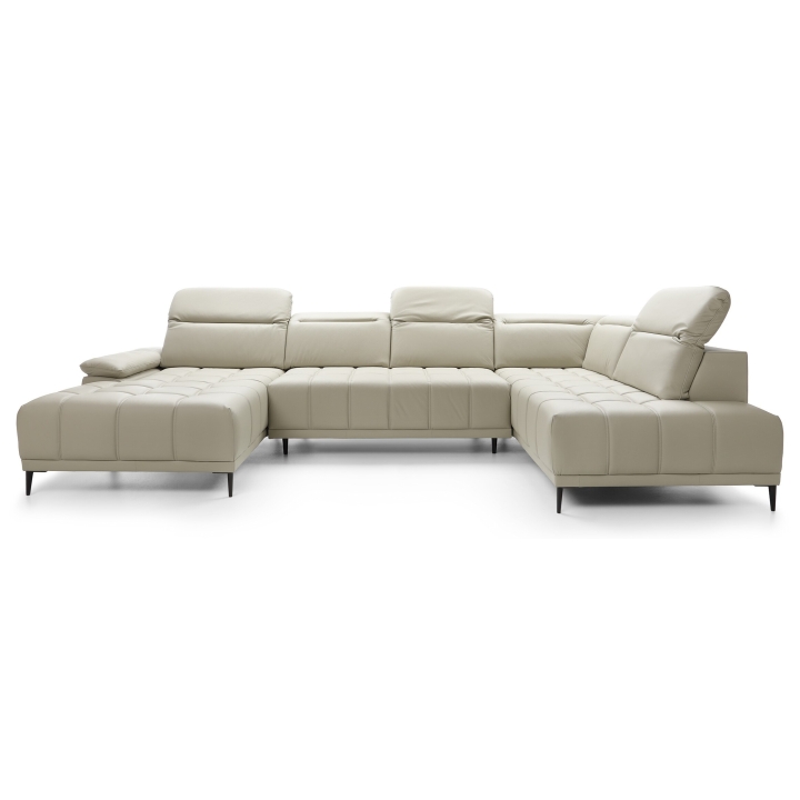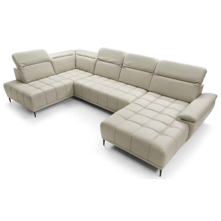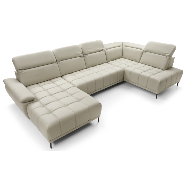 The dimensions of the corner sofa emphasize its monumental character: width 352 cm, height 82 cm - increasing to 98 cm when the headrests are raised. On one side there is an ottoman with a depth of 177 cm and a width of 105 cm, offering a comfortable place to rest in a semi-reclining position. On the opposite side, an ottoman measuring 204 cm deep and 106 cm wide was designed, providing additional seating space - the side of the corner is determined by the location of the recliner.