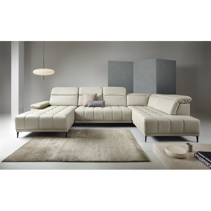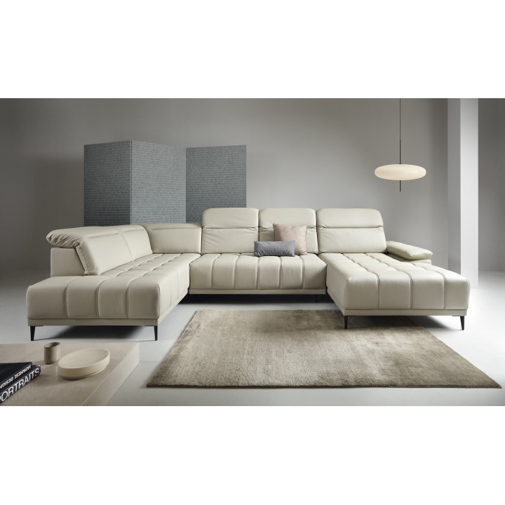 A special feature of this design is the four independently adjustable headrests, allowing you to precisely adjust the angle of head support according to your personal preferences. What's more, the seat depth adjustment allows you to adapt the furniture to your current needs. The structure is set on slender metal legs in black, which give the piece visual lightness and facilitate access to the space under the furniture.