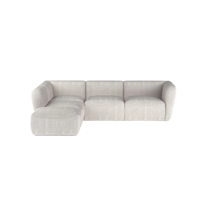 The total width of the corner is 280 cm, the height of the structure is 75 cm, while the seat height measures 44 cm. The whole is supported by subtle low legs, which reinforces its clean, geometric form. The depth of the longer side (with the ottoman) measures 218 cm, with the ottoman itself being 92 cm wide. In turn, the shorter side (on the seat side) is 102 cm deep. The depth of the seat in this version is 70 cm.