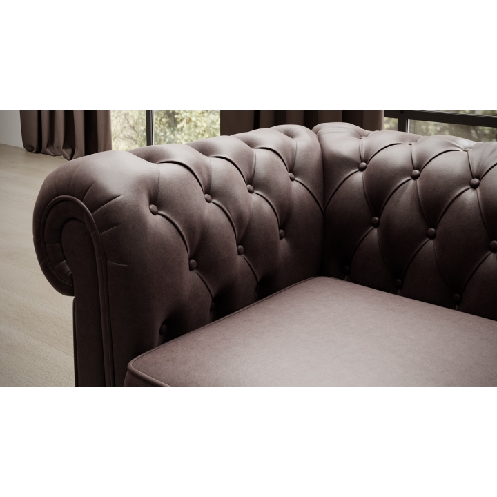 The backrest was constructed with equal attention to detail - it uses an elastic band, T-1818 and T-21 foams, as well as oatmeal, which translates into its proper resilience and back support. Such a solution allows you to relax for hours without feeling discomfort. The Chesterfield 2 sofa can be both a focal point of the living room and a complement to a space with a more formal character. An additional advantage is the possibility of combining the sofa with other elements of the Chesterfield collection, which allows you to create a coherent interior design.