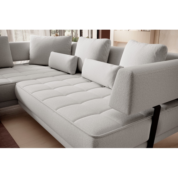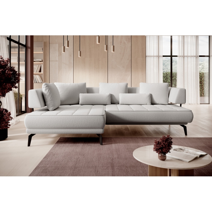 The corner sofa comes in a 3-pack for partial assembly, which makes it easy to bring and assemble even in less spacious interiors. The model does not have a sleeping function, but its elaborate rest system and the materials used make it a piece of furniture with a higher standard of relaxation. The whole piece was designed for modern spaces, where quality workmanship and expressive form count.