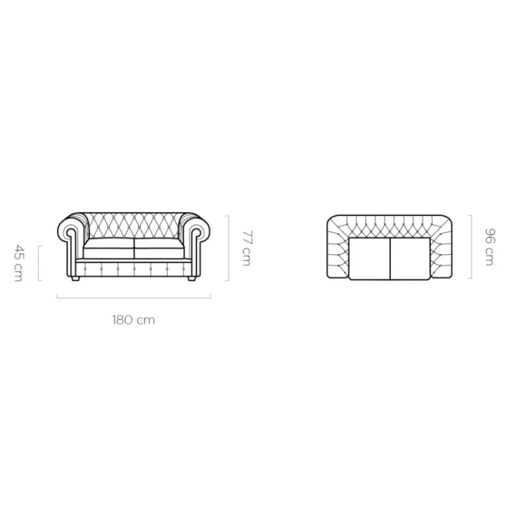 Chesterfield 3 Versailles SofaWid: 180.00, Dep: 96.00, Hgt: 77.00.
