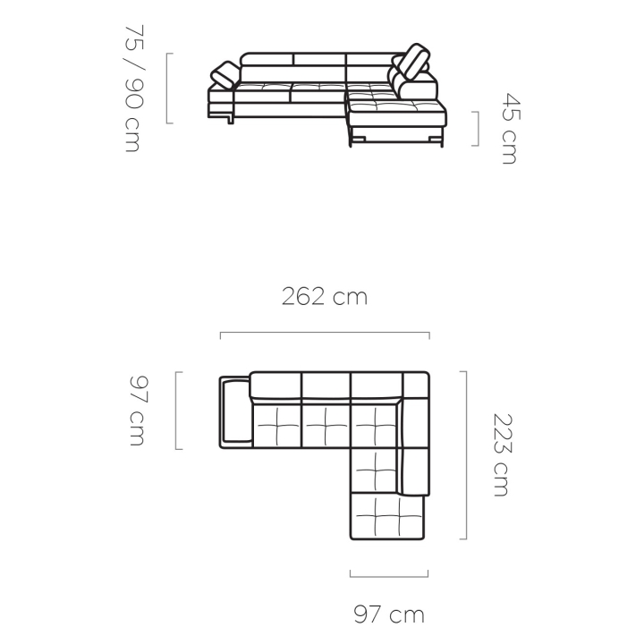 Thanks to an extensive configurator, it is possible to customize the upholstery to suit individual aesthetic preferences. There are dozens of fabrics with different textures, colors and properties to choose from, allowing you to easily incorporate the corner into your intended design concept. Dimensions given may differ by +/- 2% from the declared values due to the nature of upholstered furniture.