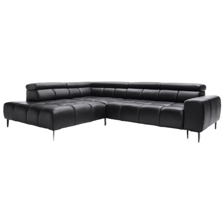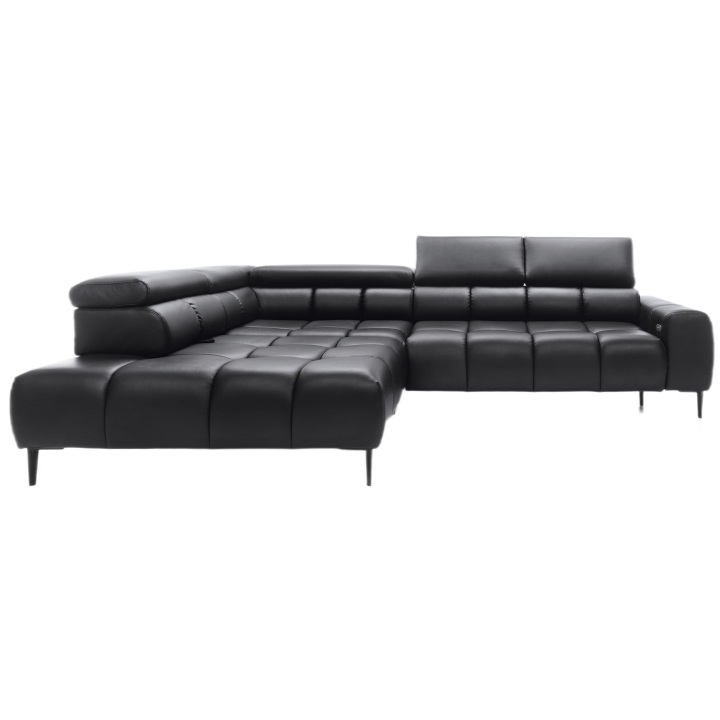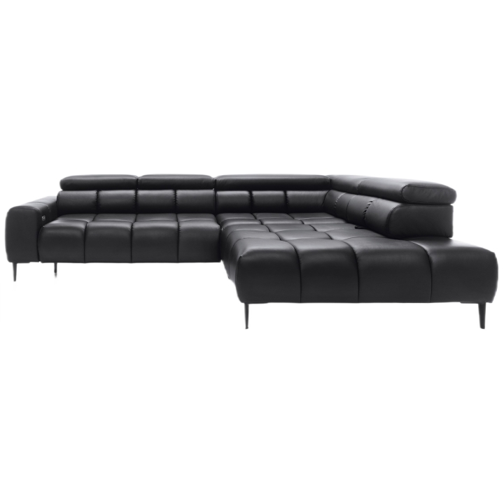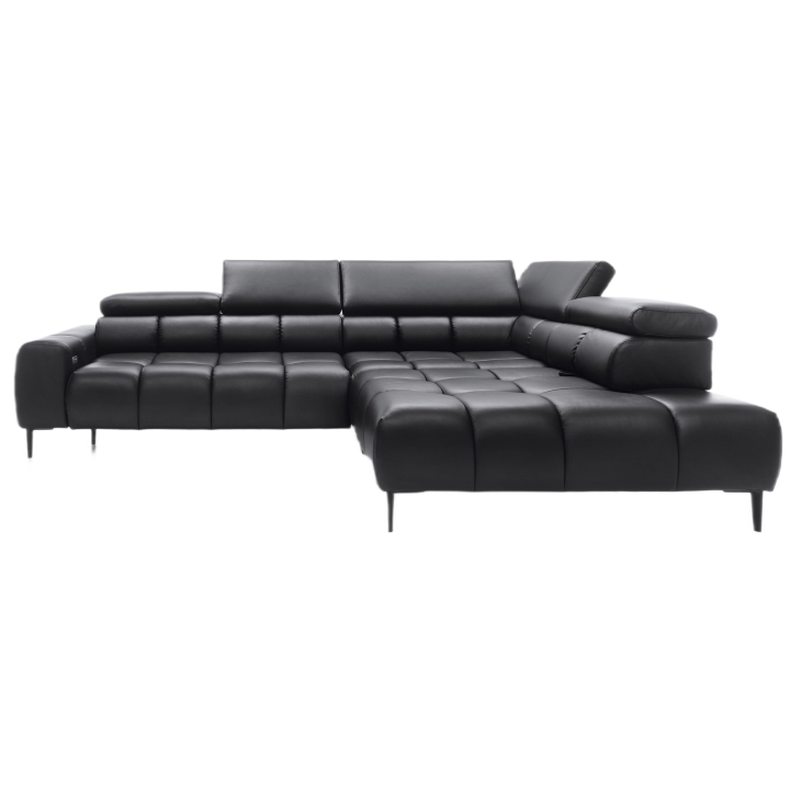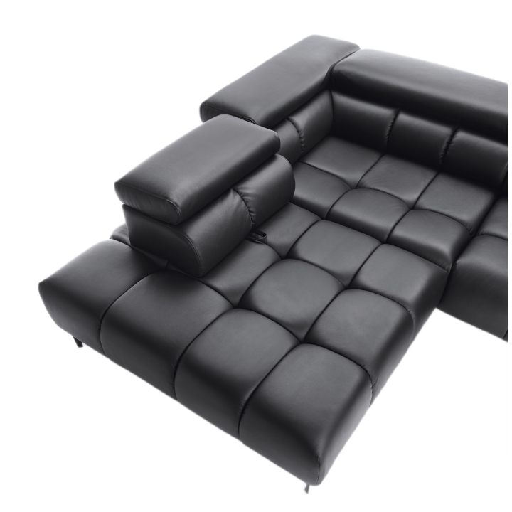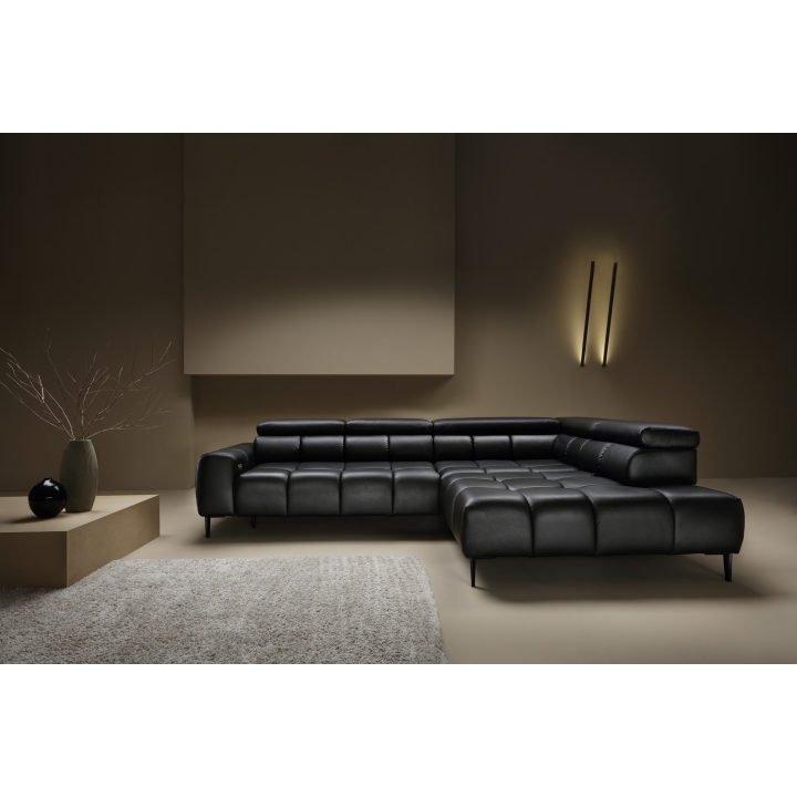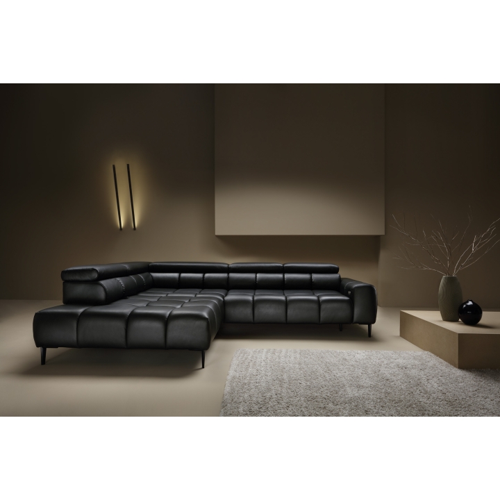 Five independent headrests effectively support the cervical region and the back. The whole is complemented by subtle vertical stitching, which, combined with the texture of natural leather, emphasize the character of the furniture and give it a distinctive look. The model is available in a left- or right-handed version.