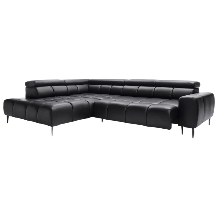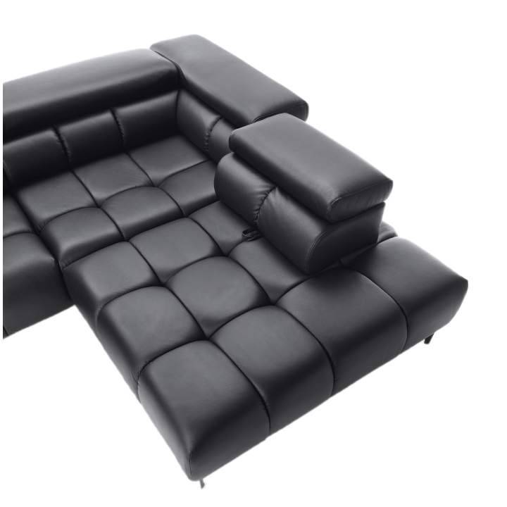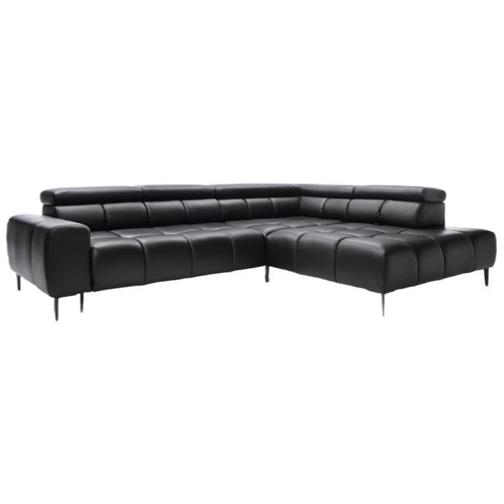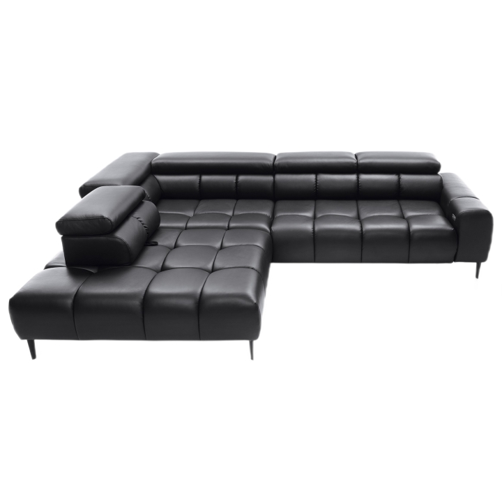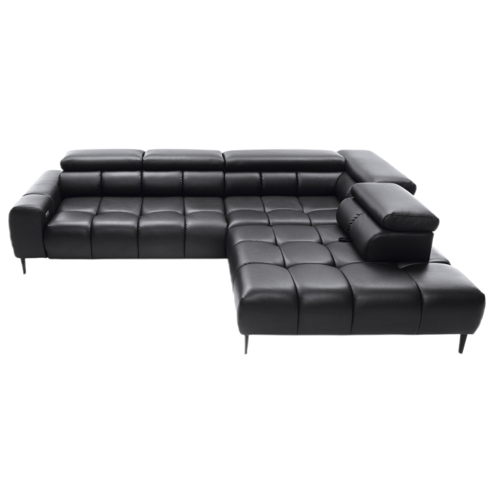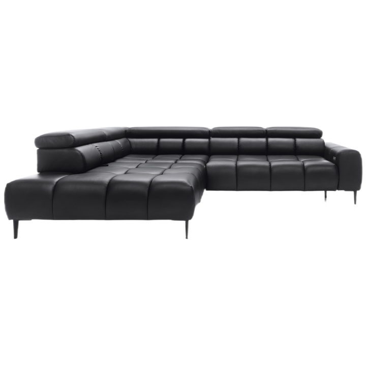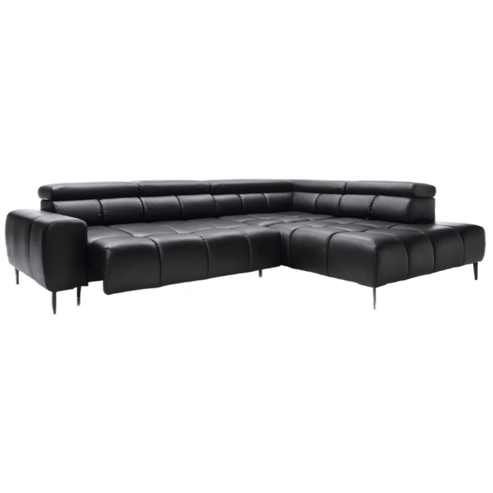Five independent headrests effectively support the cervical region and the back. The whole is complemented by subtle vertical stitching, which, combined with the texture of natural leather, emphasize the character of the furniture and give it a distinctive look. The model is available in a left- or right-handed version.