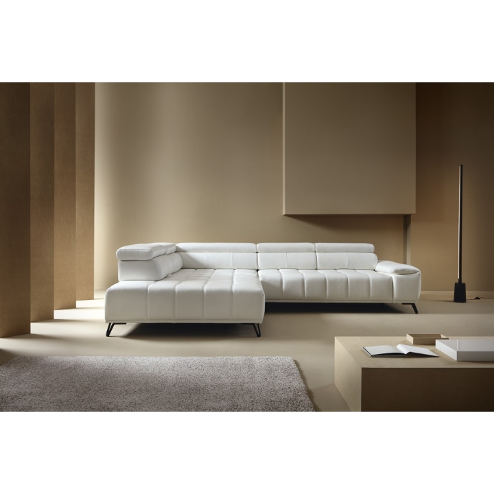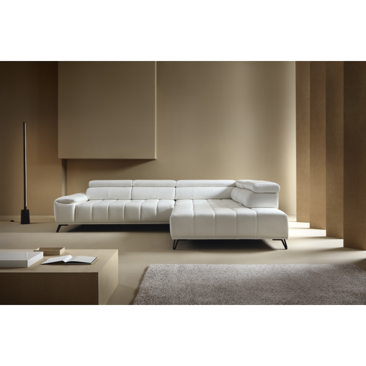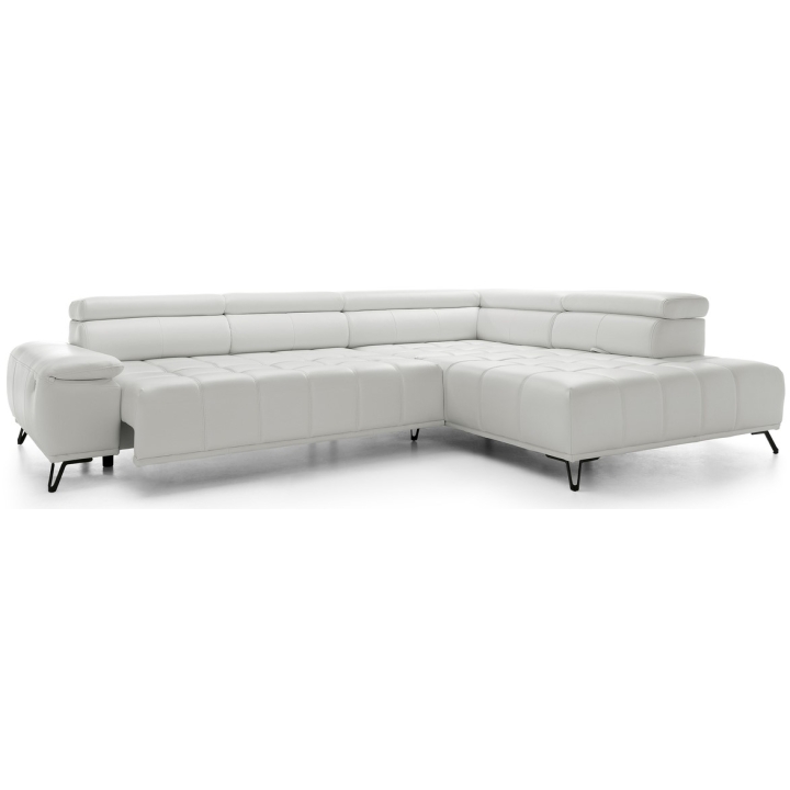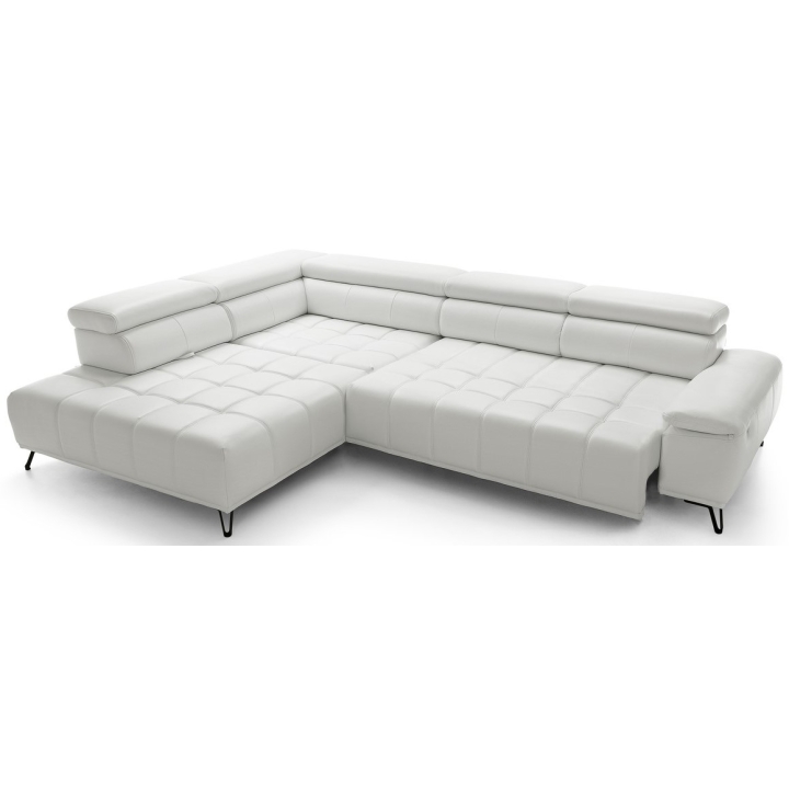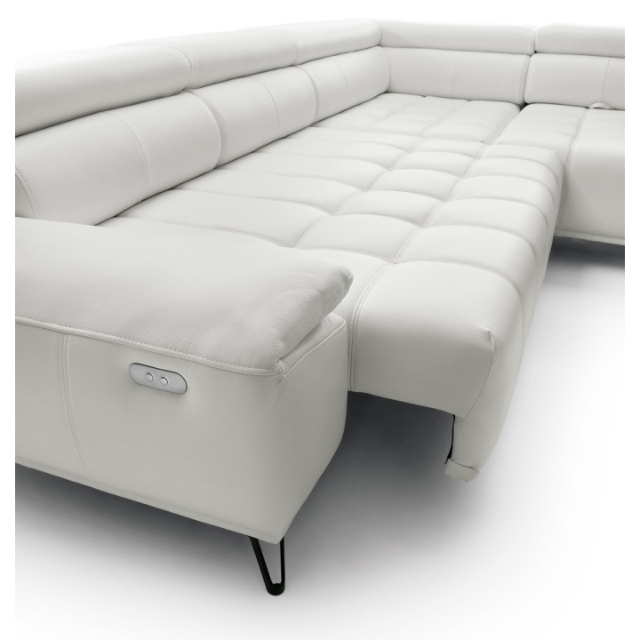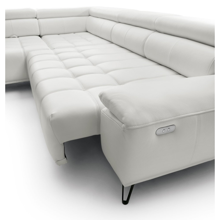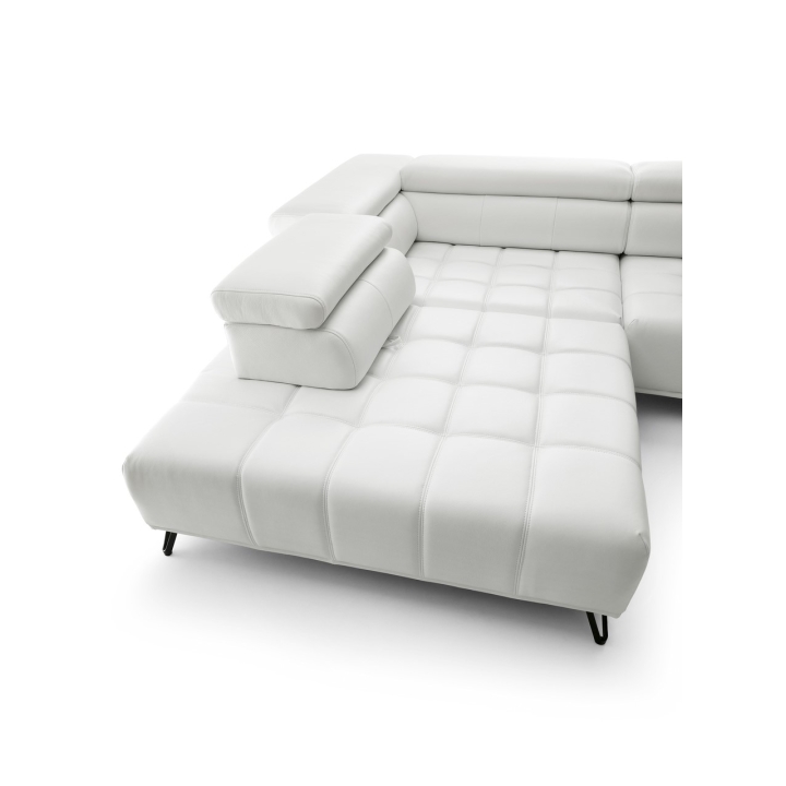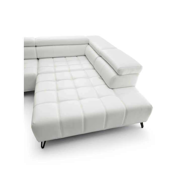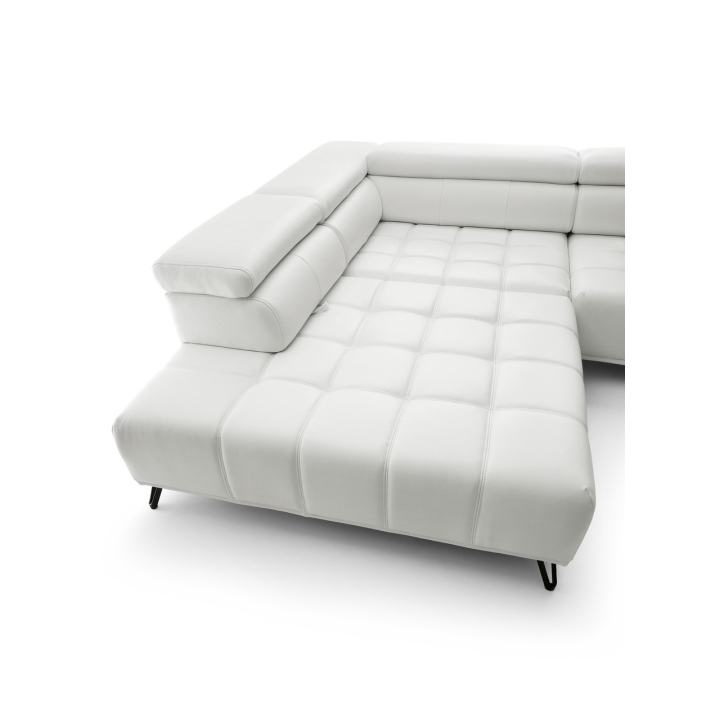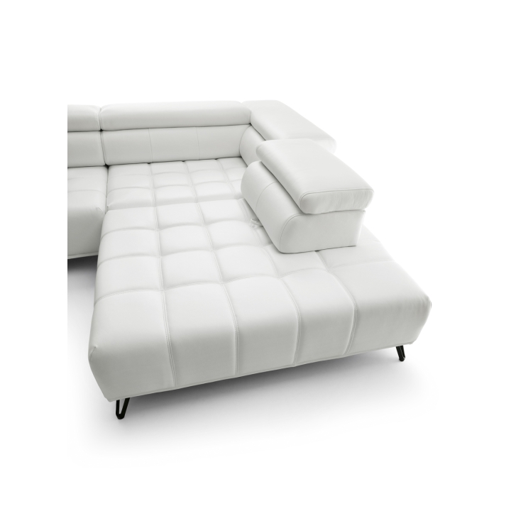 The backrest of the corner is filled with elastic band, 130 gsm oat and T-1818 polyurethane foam, which ensures softness and stability of back support. The model has 3 movable headrests and an electrically extendable seat, allowing you to adjust the position to your preferences. The back of the furniture is fully upholstered, which allows you to set it anywhere in the living room.
