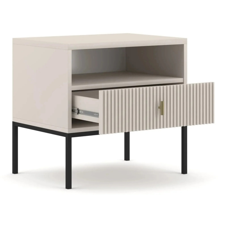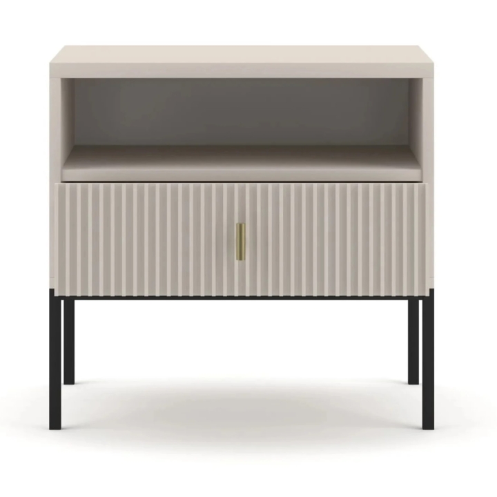 The Maggiore bedside cabinet from the collection from manufacturer Wipmeb is the ideal solution for any bedroom where subtle aesthetics and modern design are valued. It is distinguished by a front with decorative milling, which gives the furniture an original look that fits in with modern interior trends. The cabinet is available in cashmere, green and black, which blends perfectly with minimalist arrangements to create a coherent and harmonious décor.