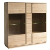 The I Limera bar from furniture manufacturer Zakor is a symmetrical combination of natural oak wood and glass. It has a large number of shelves, which allow for proper sorting of stored items. At the extremes of the bar there are glass shelves that allow you to display heirlooms, tableware or decorations close to your heart. The LED lighting available will enhance the beauty of the items stored in the bar. At the top there is a spacious top for any adaptation. The entire unit is made of natural oak wood, which presents its natural, raw beauty in the grain pattern. High-quality materials will ensure long-lasting durability and scratch resistance. We invite you to check out other interior design elements from the Limera collection by furniture manufacturer Zakor.