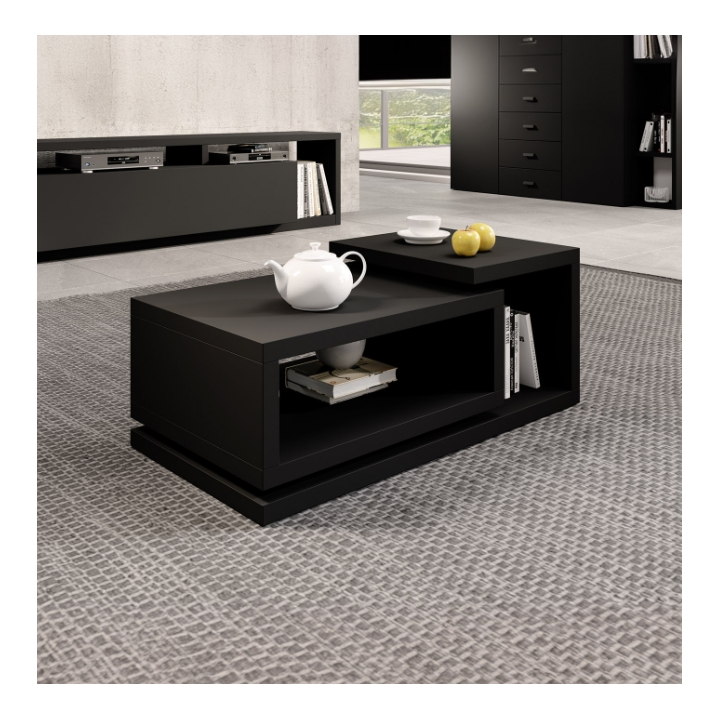 Geometryczna forma stolika nadaje mu wyjątkowość, a jednocześnie podkreśla jego uniwersalny charakter. Dzięki dodatkowej powierzchni pod blatem oferuje on sprytne miejsce do przechowywania drobiazgów. To model, który z powodzeniem wpisze się w różne typy wnętrz, nadając im indywidualny akcent.