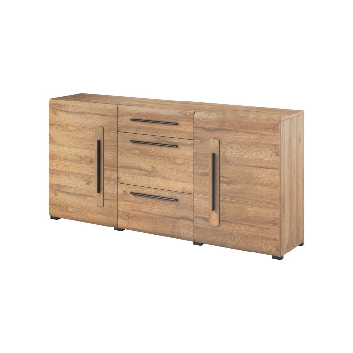 Komoda Tulsa Typ 26 Helvetia Wieruszów to propozycja dla osób poszukujących solidnego wyposażenia do salonu. Wyposażona jest w dwoje drzwi, trzy szuflady z pełnym wysuwem oraz dwie półki, co pozwala na wygodne uporządkowanie przedmiotów codziennego użytku. Producentem mebla jest renomowana firma Helvetia Wieruszów, znana z wysokiej jakości wykonania.