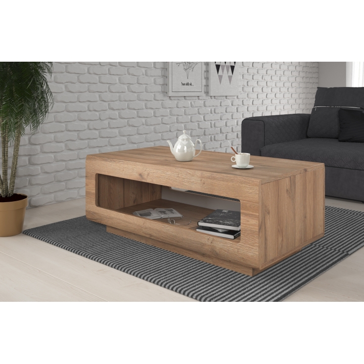 Stolik kawowy Tulsa Typ 99 Helvetia Wieruszów łączy w sobie prostotę formy i funkcję dodatkowego miejsca do przechowywania. Dzięki precyzyjnemu wykonaniu i przemyślanym wymiarom stanowi wartościowy element wyposażenia salonu. To mebel, który podkreśli charakter wnętrza i ułatwi utrzymanie porządku podczas codziennego użytkowania.