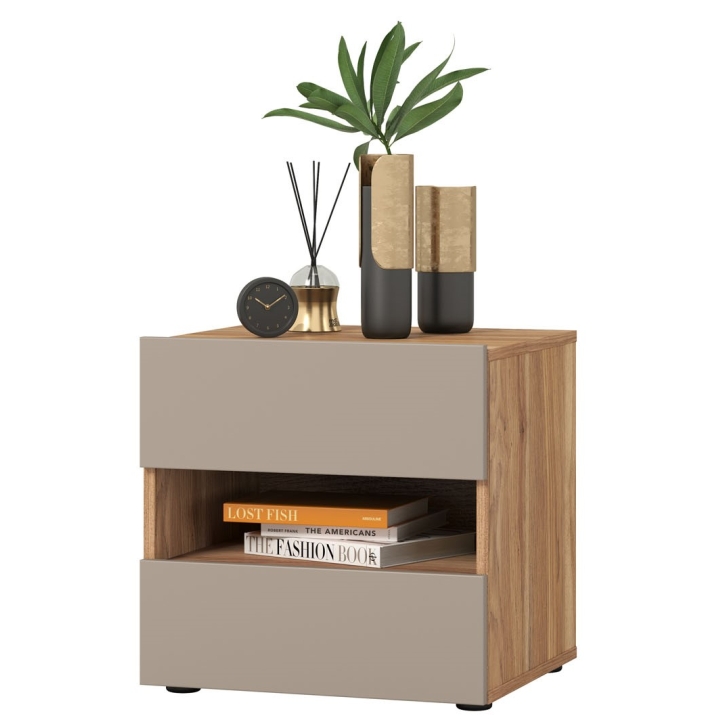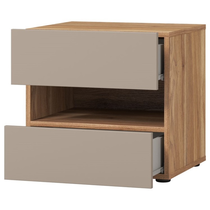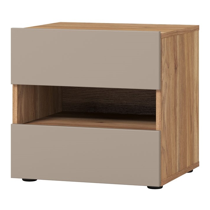 Szafka nocna Impressio Typ 23 marki Helvetia Wieruszów to propozycja dla osób poszukujących wyrazistego wzornictwa w zestawieniu z dopracowanymi detalami. Zestawienie kolorystyczne Mauvella Oak – Congo nadaje jej unikalny charakter, podkreślając naturalne inspiracje w nowoczesnej formie. Dzięki temu mebel staje się intrygującym akcentem we wnętrzu, który nie pozostaje niezauważony.