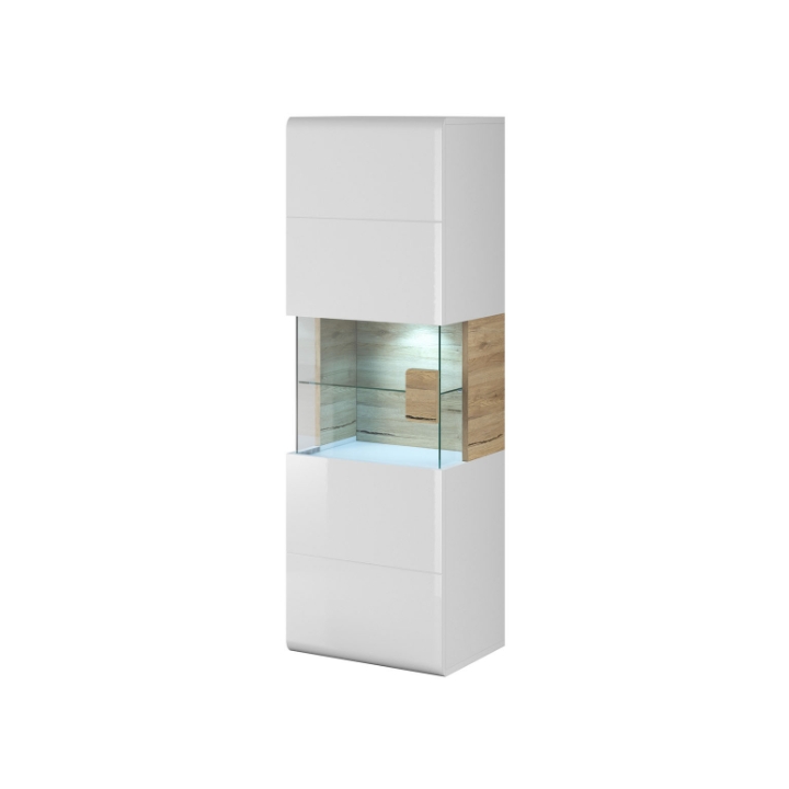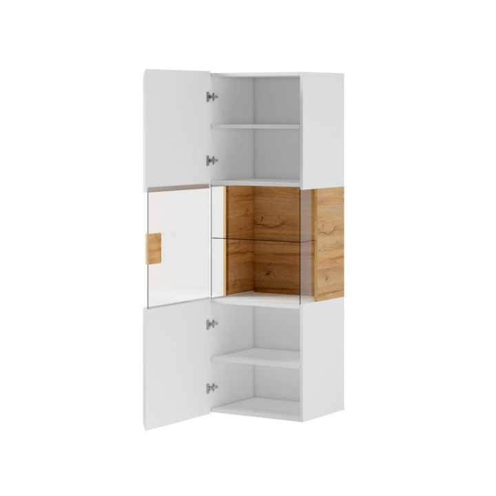 Szafka umożliwia nie tylko organizację domowych przedmiotów, lecz także wyeksponowanie dekoracji czy kolekcji. Efekt ten można wzmocnić poprzez zastosowanie dedykowanego panelu LED, który rozświetli wnętrze mebla i nada przestrzeni nastrojowego klimatu.