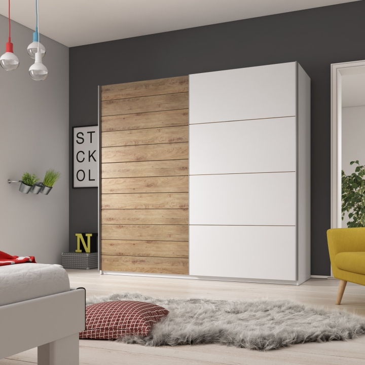 Szafa Galaxy Typ 18 220 Helvetia Wieruszów to mebel zaprojektowany z myślą o osobach poszukujących dużej przestrzeni do przechowywania odzieży i dodatków. Wyposażona została w 2 drzwi przesuwne, które umożliwiają wygodne korzystanie z wnętrza, a jednocześnie pozwalają zaoszczędzić miejsce w pomieszczeniu. Całość wykonano z płyty laminowanej, co zapewnia trwałość oraz odporność na codzienne użytkowanie.