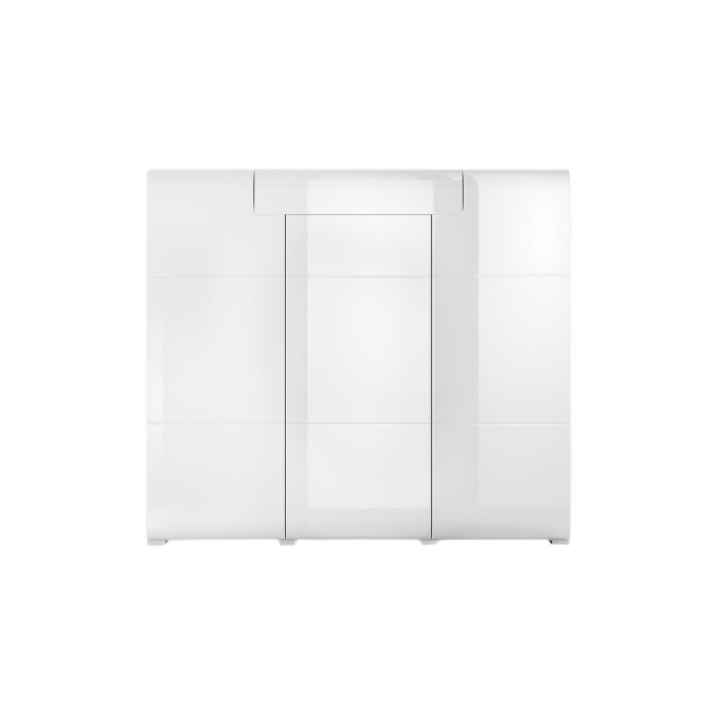 Za trzema frontami kryje się łącznie 8 półek, z czego dwie, umieszczone w górnej partii, tworzą niewielkie schowki na drobne akcesoria. Pozostałe półki mają bardziej tradycyjny układ i pozwalają na wygodne posegregowanie różnorodnych przedmiotów. W centrum, tuż pod górną krawędzią, mieści się dyskretnie wkomponowana szuflada, która poszerza możliwości przechowywania.