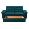 Model osadzony jest na metalowych nóżkach, co podkreśla nowoczesny wygląd. Pikowane oparcie nadaje sofie wyjątkowy charakter, a pojemnik na pościel umożliwia przechowywanie dodatkowych tekstyliów. Dostępność w różnych kolorach tapicerki pozwala dopasować mebel do każdej aranżacji wnętrza.