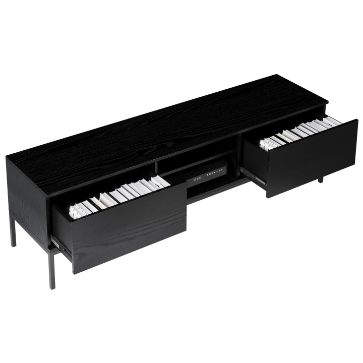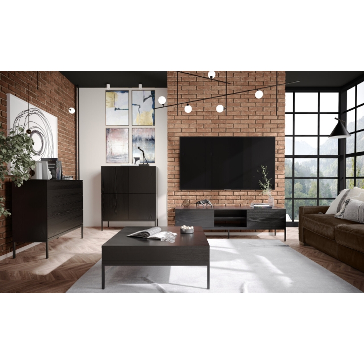 Szafka RTV INDUST Meli Meble o szerokości 170 cm to mebel stworzony z myślą o centralnym miejscu w salonie. Wyposażona została w 2 szuflady o szerokości 60 cm, które umożliwiają przechowywanie różnego rodzaju akcesoriów. Dodatkowa wnęka z półką w części środkowej zapewnia przestrzeń dla sprzętu RTV, a specjalny otwór pozwala na dyskretne przeprowadzenie przewodów.
