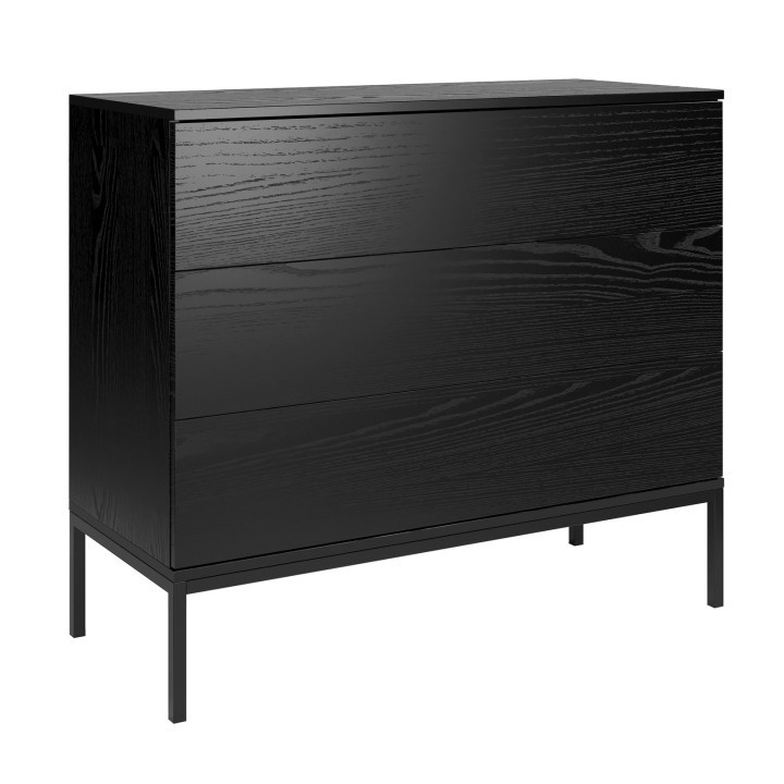 Całość uzupełniają nogi wykonane z czarnego profilu metalowego, które gwarantują odpowiednią stabilność. Brak uchwytów w szufladach w połączeniu z systemem push to open tworzy spójną, nowoczesną całość. Komoda 3S Indust to mebel, który z powodzeniem odnajdzie się w salonie, sypialni czy przedpokoju, nadając wnętrzu charakteru i porządku.