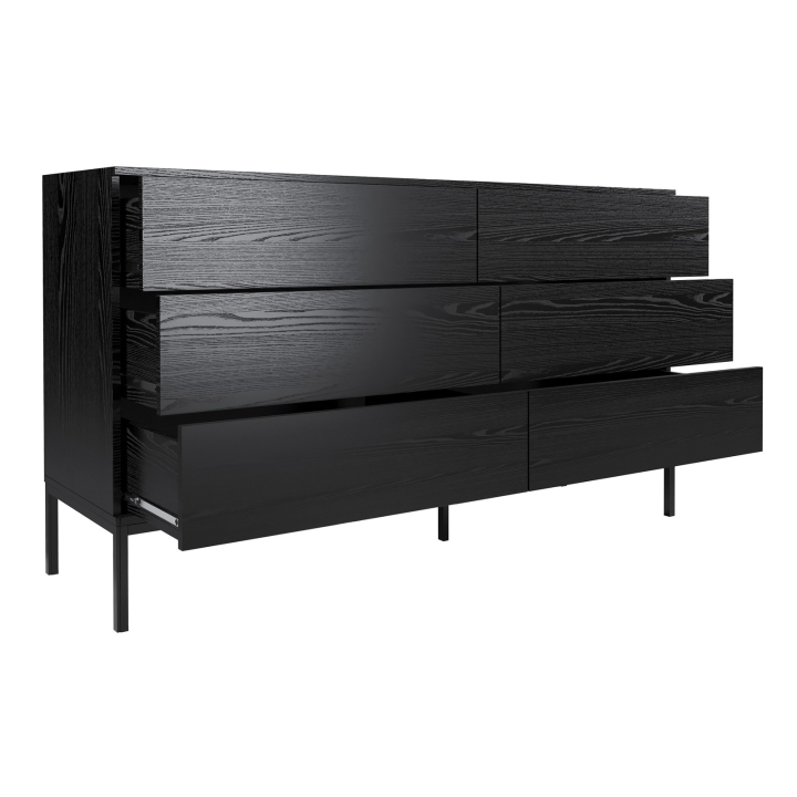 Wyposażona w 6 szuflad komoda zapewnia dużą powierzchnię do przechowywania. Każda z nich ma wymiar wewnętrzny 66 x 33 cm oraz została wyposażona w system Push to open i pełny wysuw, co pozwala na wygodne korzystanie z całej głębokości. Dzięki temu codzienne użytkowanie staje się płynne i bezproblemowe.