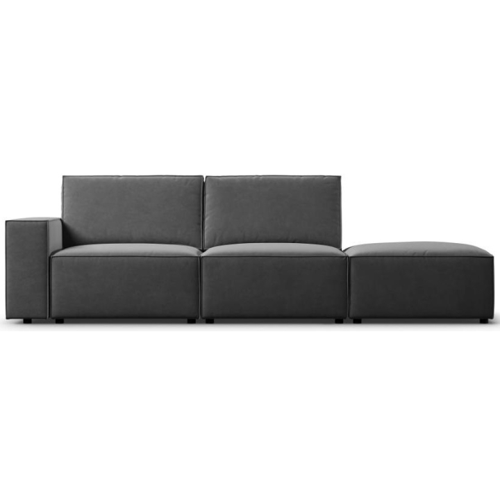 Sofa 3 os. Carlo producenta Milo Casa to mebel o wymiarach: 255 cm szerokości, 90 cm wysokości, 102 cm głębokości, który charakteryzuje się niezwykłą wygodą. Ta modna sofa jest dostępna w 7 kolorach: Jasny Beżowy, Królewski Niebieski, Szary, Jasny Szary, Żółty, Czarny oraz Butelkowy Zielony, dzięki czemu będzie pasować do każdego rodzaju wnętrz. Wypełnienie siedziska wykonano z połączenia sprężyny falistej oraz pianki poliuretanowej o wysokiej elastyczności, a oparcie wypełniono granulatem z pianki i silikonem. Wyróżnikiem sofy jest jej modny kształt, który wpływa na jej przestronność. Sofa została obita aksamitną delikatnie połyskującą tkaniną, która jest przyjemna w dotyku i odporna na przetarcia. Wysokiej jakości materiały wykorzystane do produkcji mebla sprawiają, że sofa trzyosobowa Carlo charakteryzuje się dużą wytrzymałością i trwałością. Mebel jest osadzony na niskich, wykonanych z tworzywa nogach.