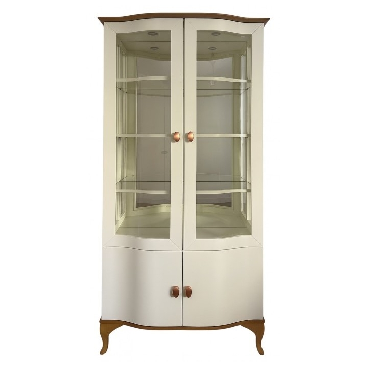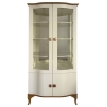 Witryna ma szerokość 86 cm, wysokość 200 cm i głębokość 50 cm, co gwarantuje odpowiednią przestrzeń do przechowywania i ekspozycji. Wewnątrz znajduje się układ czterech drzwi, które umożliwiają wygodny dostęp do zawartości. Zastosowane zawiasy puszkowe ze spowalniaczem umożliwiają płynne, ciche zamykanie, a solidne stalowe uchwyty w kolorze złotym nadają meblowi wytwornego charakteru.