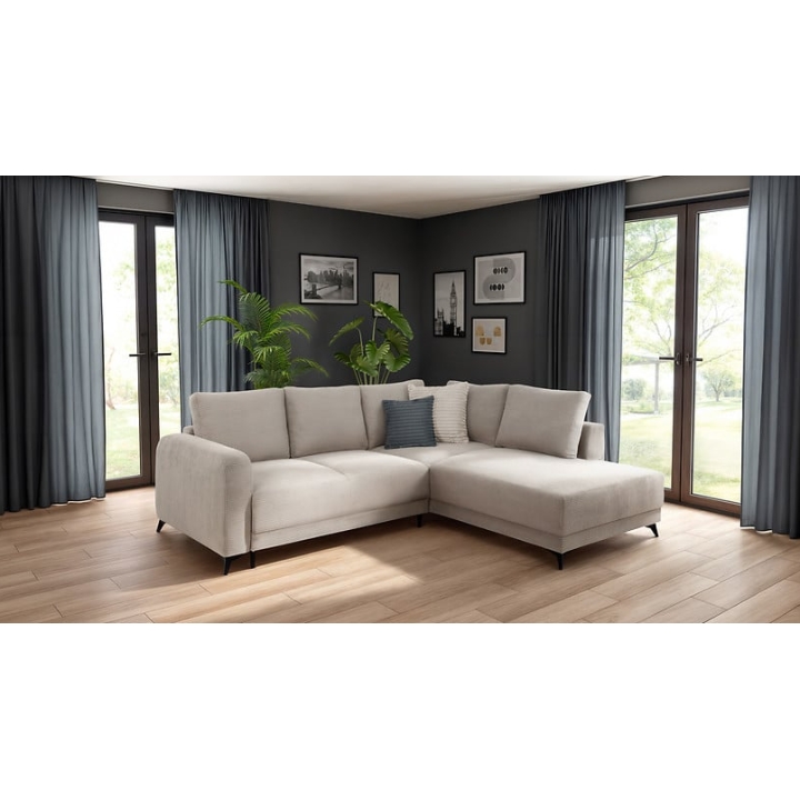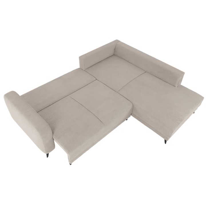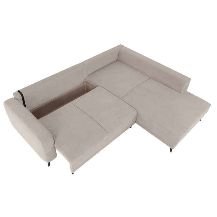 Dzięki automatycznemu mechanizmowi DL narożnik z łatwością przekształca się w przestrzeń do spania. Wystarczy wysunąć siedzisko i złożyć oparcie, aby uzyskać powierzchnię spania o wymiarach 142 × 217 cm. Dodatkowo mebel wyposażono w pojemny schowek na pościel, stanowiący wygodne miejsce do przechowywania tekstyliów i drobiazgów, co sprzyja utrzymaniu porządku w salonie.