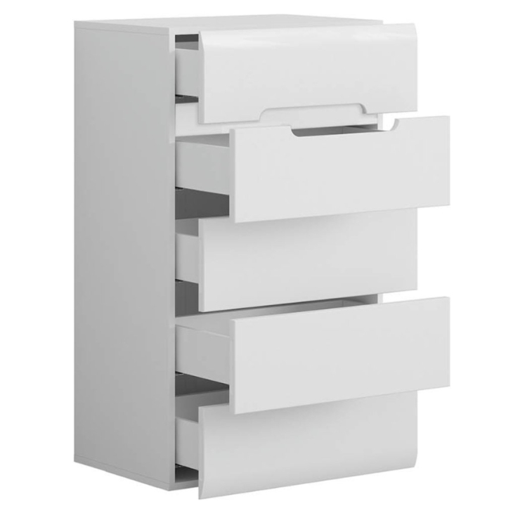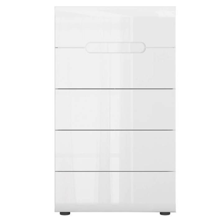 Komoda Azteca Trio producenta mebli Black Red White ma aż pięć szuflad. Pozwala to na dokładną segregację przechowywanych w niej przedmiotów. Posiada zafrezowania na górze i dole frontów, dekoracyjną listwę oraz białe wybarwienie, które są cechami charakterystycznymi kolekcji Azteca Trio. Polecamy sprawdzenie reszty mebli z tej kolekcji producenta Black Red White.