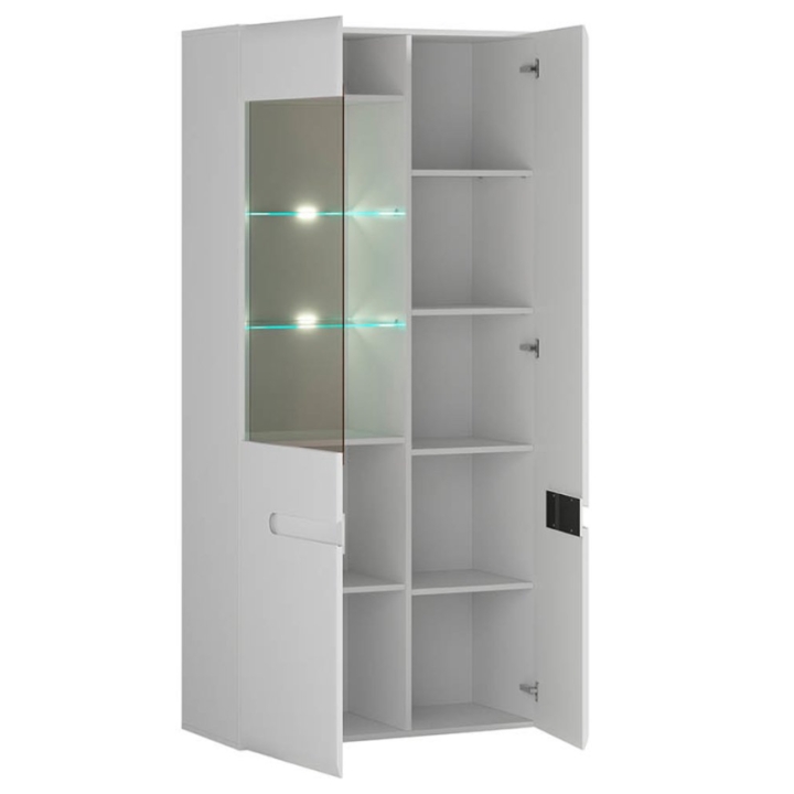 Witryna dwudrzwiowa Azteca Trio producenta mebli Black Red White o estetycznym i stonowanym wykonaniu wyróżnia się swoją asymetrią. Drzwi o różnej szerokości, przeszklenie jednego ze skrzydeł, oraz różnej długości uchwyty sprawiają, że nie jest to kolejna prosta, monotonna witryna. Zakryta część półek pozwoli Ci przechować przedmioty, których nie chcesz eksponować, zaś przeszklone półki ze światłem LED podkreślą piękno dekoracji i wszystkich cennych dla Ciebie przedmiotów. Witryna posiada zawiasy z cichym domykiem, zwiększające komfort użytkowania mebla. W zestawieniu z innymi elementami kolekcji Azteca, witryna stworzy idealny zestaw spełniający wszystkie Twoje wymagania.