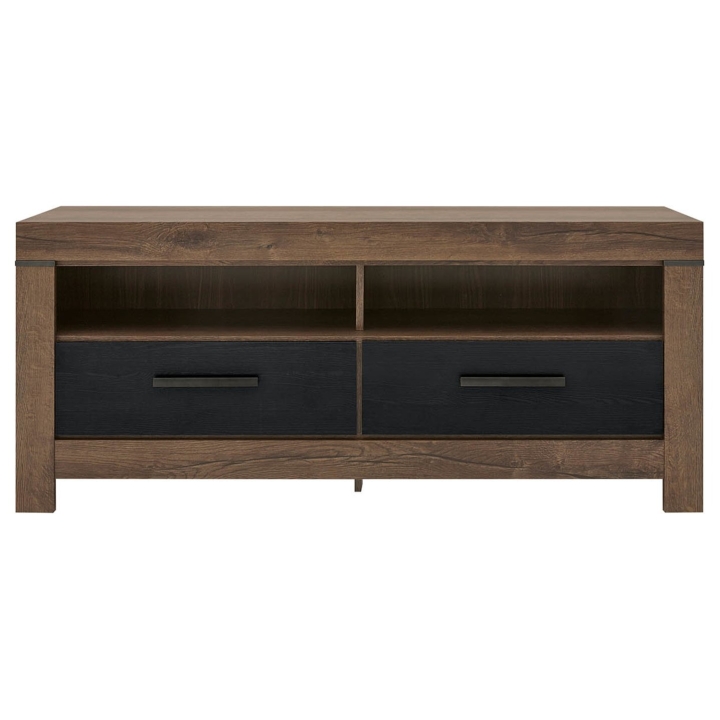 Szafka RTV Balin marki Black Red White na długim blacie, gdzie ustawisz telewizor, a w 2 otwartych półkach ustawisz dekoder i odtwarzacz dvd. Przechowywanie akcesoriów i płyt to zadanie 2 kompaktowych szuflad w dolnej części. Dostępne w opcji oświetlenie LED możesz umieścić pod szklanymi półkami, tworząc wyjątkowy nastrój. Stylowa szafka RTV ociepli wnętrze dzięki niepowtarzalnej kolorystyce. Korpus w wybarwieniu dąb monastery zestawiono z frontami w spójnym kolorze dąb monastery lub kontrastującym dąb czarny. Zwróć uwagę na pogrubiany korpus, który tworzy wyjątkową oprawę dla gładkich frontów. Zestawiaj dowolnie komodę, półkę, 2 witryny, szafkę rtv, wykorzystaj pełnię możliwości kolekcji Balin i ciesz się stylowym salonem.