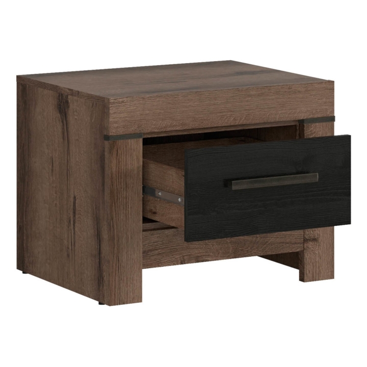 Szafka nocna Balin marki Black Red White będzie zawsze w zasięgu ręki – zarówno wieczorem, jak i o poranku. Podręczna szuflada to doskonałe miejsce na kosmetyki do pielęgnacji, leki i książkę. Na blacie znajdzie się miejsce na lampkę nocną, budzik, telefon i szklankę wody. Tym, co ją wyróżnia, jest efektowny pogrubiony korpus, który współgra z gładką powierzchnią frontów. Mebel do sypialni wykonaliśmy w 3 modnych wersjach kolorystycznych. Zestawiając szafkę nocną Balin z pozostałymi elementami kolekcji, np. łóżkiem, szafą i komodami, zyskasz spójną i ergonomiczną zabudowę sypialni.