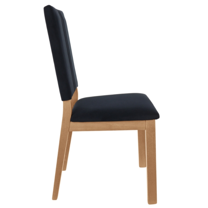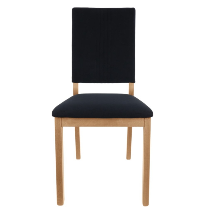 Siedzisko i oparcie tapicerowane zostały tkaniną Mavel 19 black – to gładki, przyjemny w dotyku materiał, który dobrze znosi intensywne użytkowanie. Wnętrze wypełniono warstwą sprężystej pianki, dzięki czemu krzesło zapewnia komfort podczas dłuższego siedzenia – zarówno przy codziennych posiłkach, jak i podczas rodzinnych spotkań przy stole.