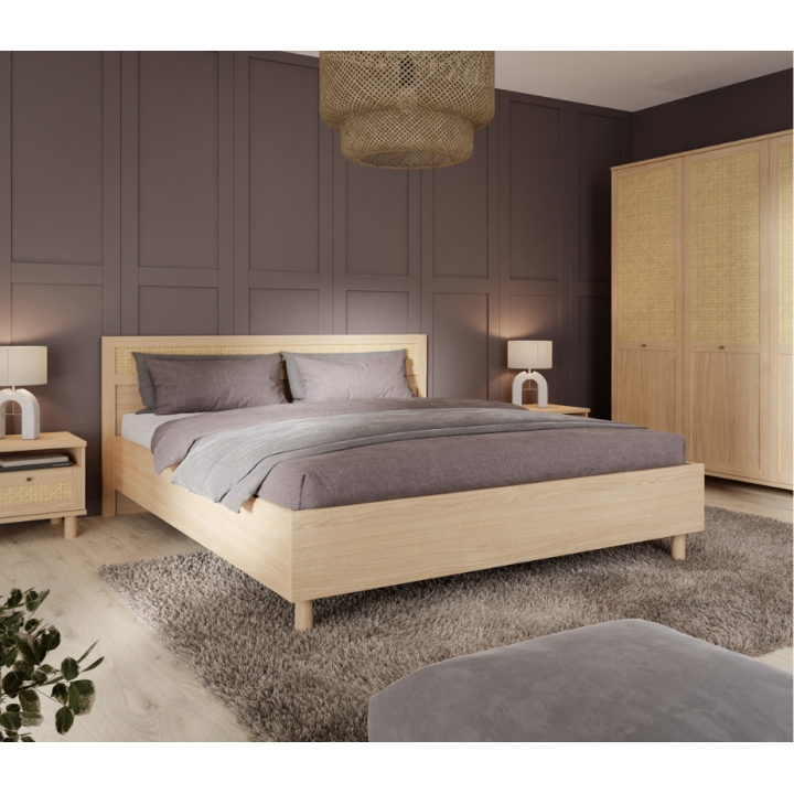 Łóżko Caloroso 160x200 dąb naturalny rattan Black Red White