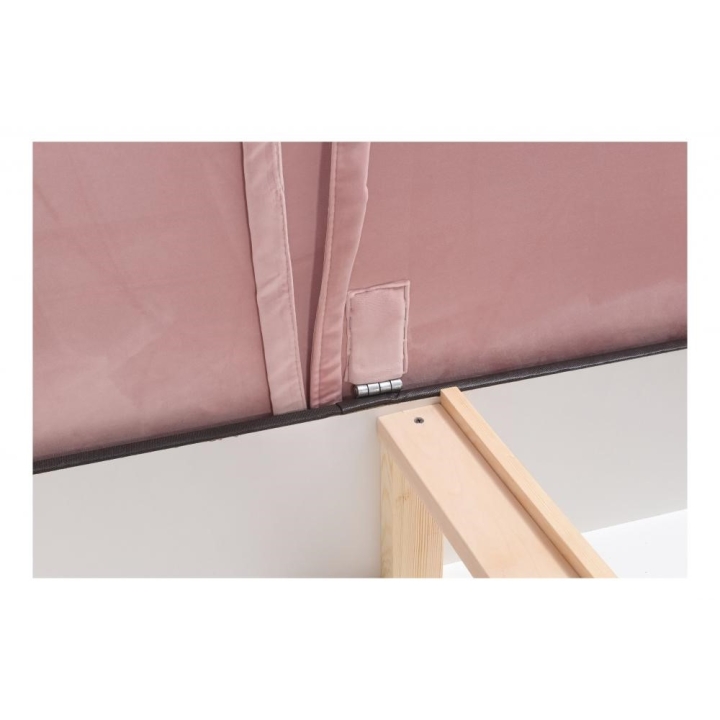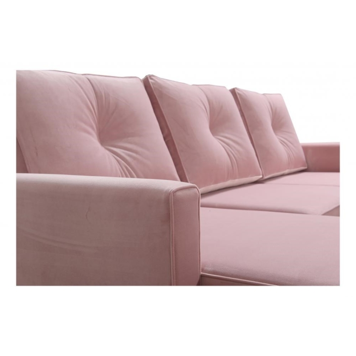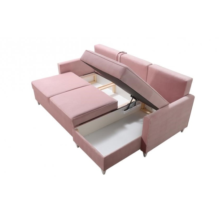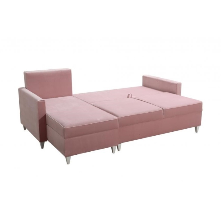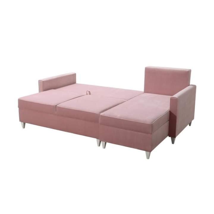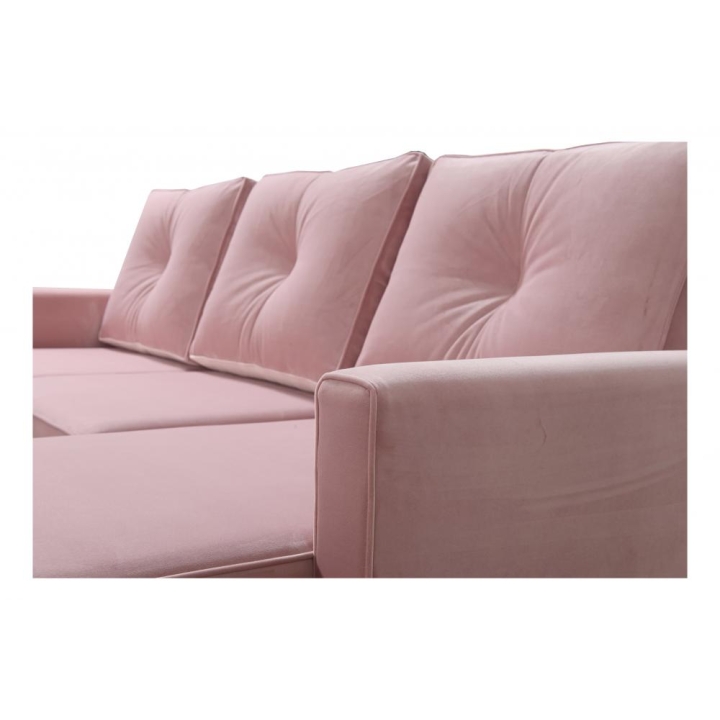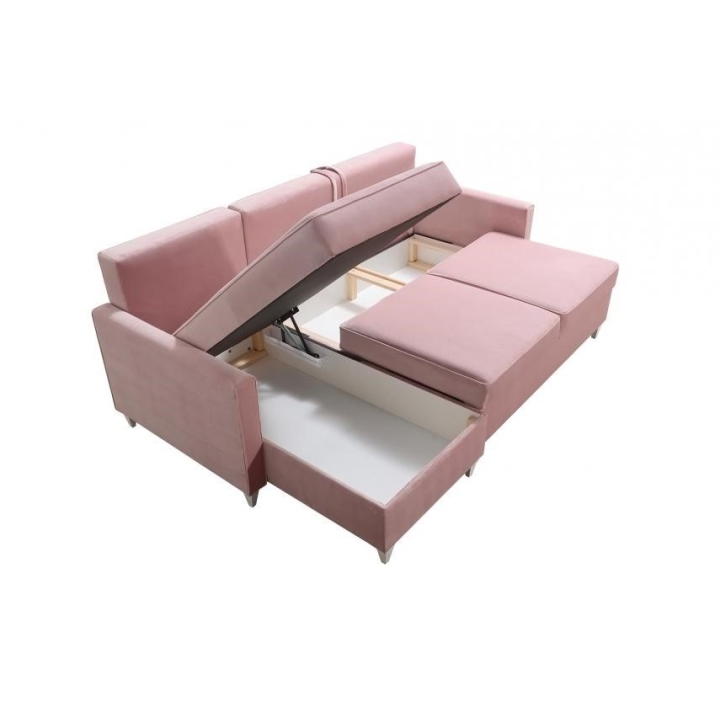 Model wyposażono w 2 pojemniki na pościel, które umożliwiają zachowanie porządku i dodatkową organizację przestrzeni. W zestawie znajdują się także poduszki widoczne na zdjęciu, wykonane w tej samej tkaninie co narożnik, jednak bez opcji zamka błyskawicznego. Producent nie przewidział możliwości modyfikacji poduszek na wersję zapinaną.