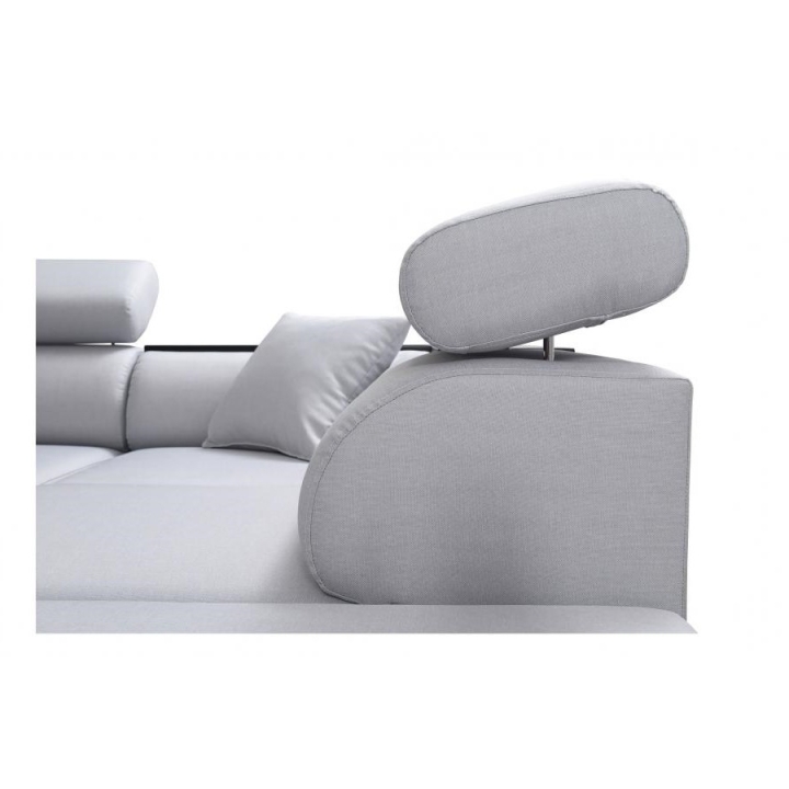 Konstrukcja narożnika opiera się na stelażu wykonanym na ramie drewnianej połączonej z płytą wiórową, co gwarantuje jego stabilność i długotrwałą wytrzymałość. Za optymalne wsparcie i miękkość odpowiada połączenie sprężyn falistych oraz utwardzonej pianki tapicerskiej T-30, które utrzymują wysokość siedziska na poziomie 45 cm. Dodatkową zaletą są 3 regulowane zagłówki, umożliwiające precyzyjne dopasowanie oparcia do indywidualnych potrzeb użytkowników.