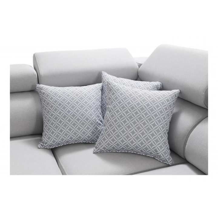 Model oferuje przestrzeń do snu o wymiarach 284 × 127 cm, co zapewnia odpowiednie warunki do nocnego wypoczynku. Wysokość siedziska wynosi 42 cm, co ułatwia wstawanie i sprzyja stabilnej pozycji podczas siedzenia. Dodatkowym atutem są poduszki widoczne na zdjęciu – dodawane bezpłatnie, co zwiększa komfort korzystania z narożnika od pierwszych chwil.