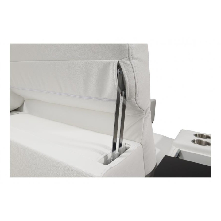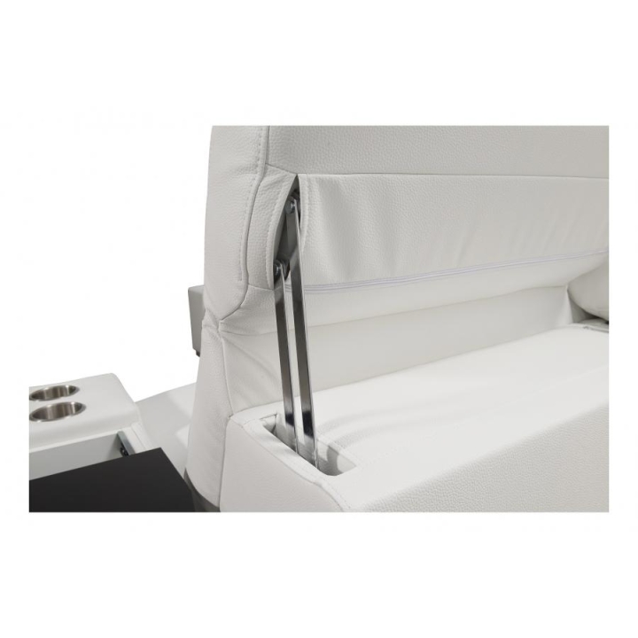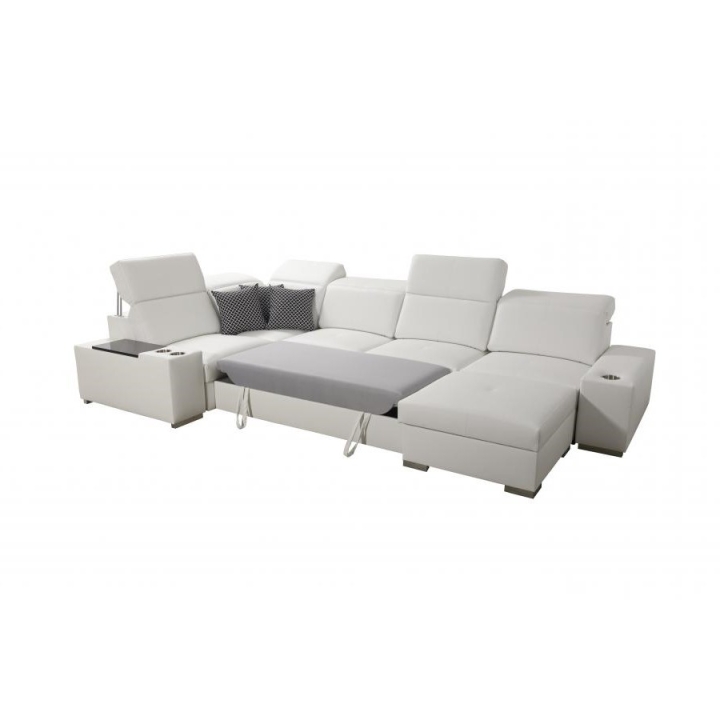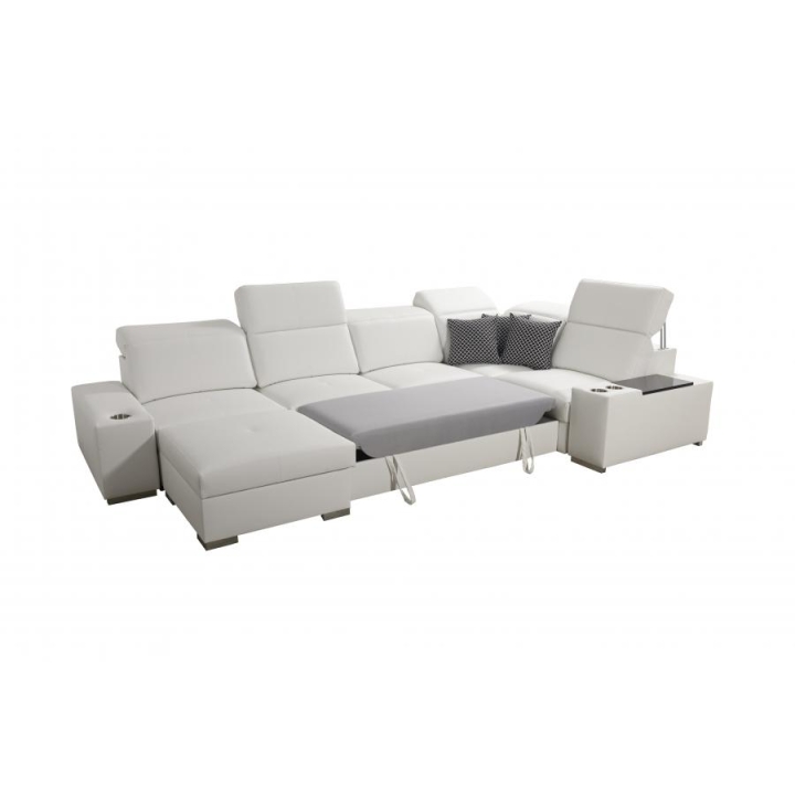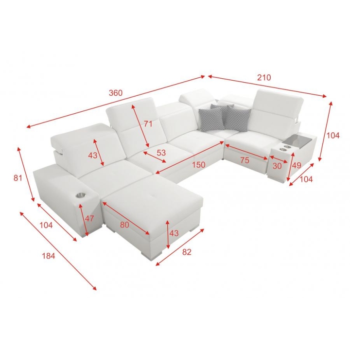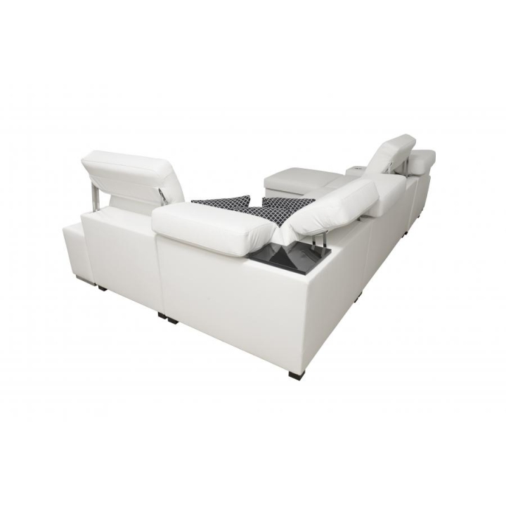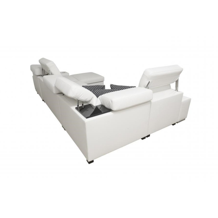W konstrukcji narożnika zastosowano 6 regulowanych zagłówków, które umożliwiają dostosowanie podparcia głowy do aktualnych potrzeb użytkownika. Do dyspozycji znajdują się również 2 pojemniki na pościel, ułatwiające zachowanie porządku w przestrzeni dziennej. Leżanka składa się z dwóch części – pufy oraz siedziska, co zwiększa możliwości dopasowania układu wypoczynkowego.