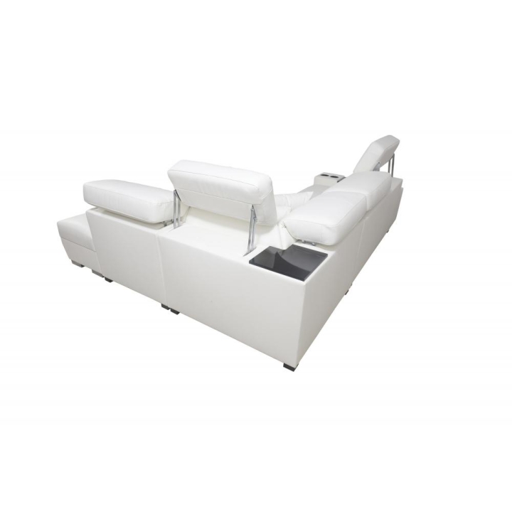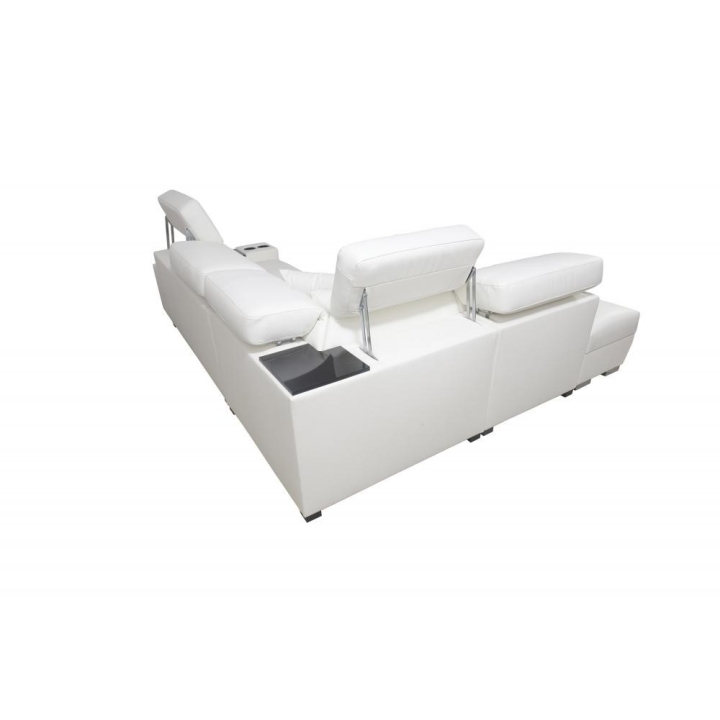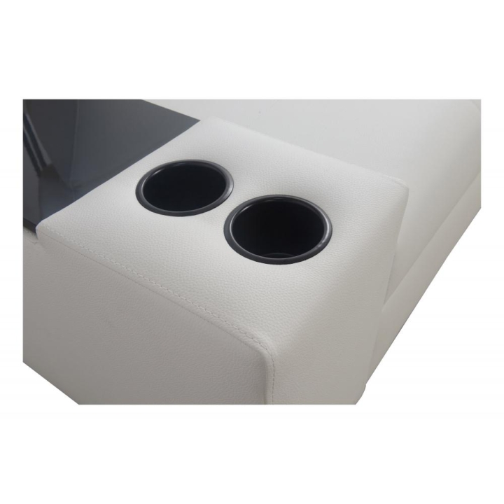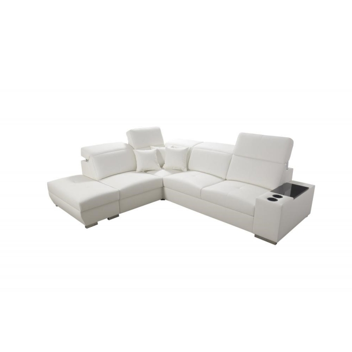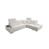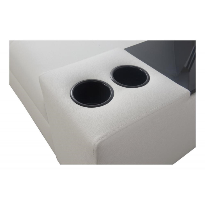 Narożnik może być wykonany w całości z dowolnie wybranej tkaniny, co daje szerokie możliwości indywidualnego dopasowania. Dostępne są kubki w kolorze czarnym lub srebrnym, a półki oferują warianty: biały, czarny, dąb Lancelot, Venge srebrne, satyna mat czarny, olcha, buk oraz Venge. Dzięki rozbudowanemu konfiguratorowi możliwe jest dopasowanie tapicerki do indywidualnych preferencji estetycznych. Do wyboru pozostają dziesiątki tkanin o różnych fakturach, kolorach i właściwościach, co pozwala z łatwością wpisać narożnik w zamierzony koncept aranżacyjny. Mebel oferuje nie tylko wygodę użytkowania, ale też możliwość pełnej personalizacji wizualnej.