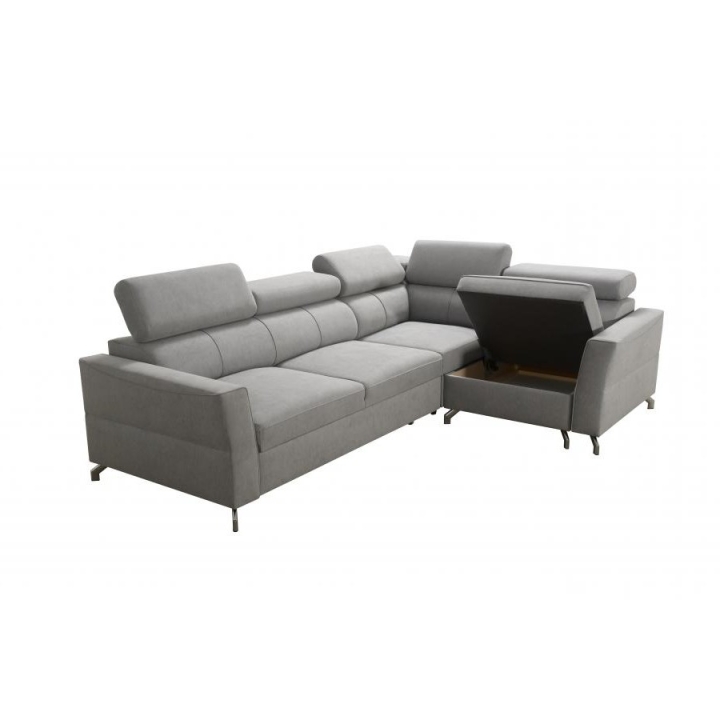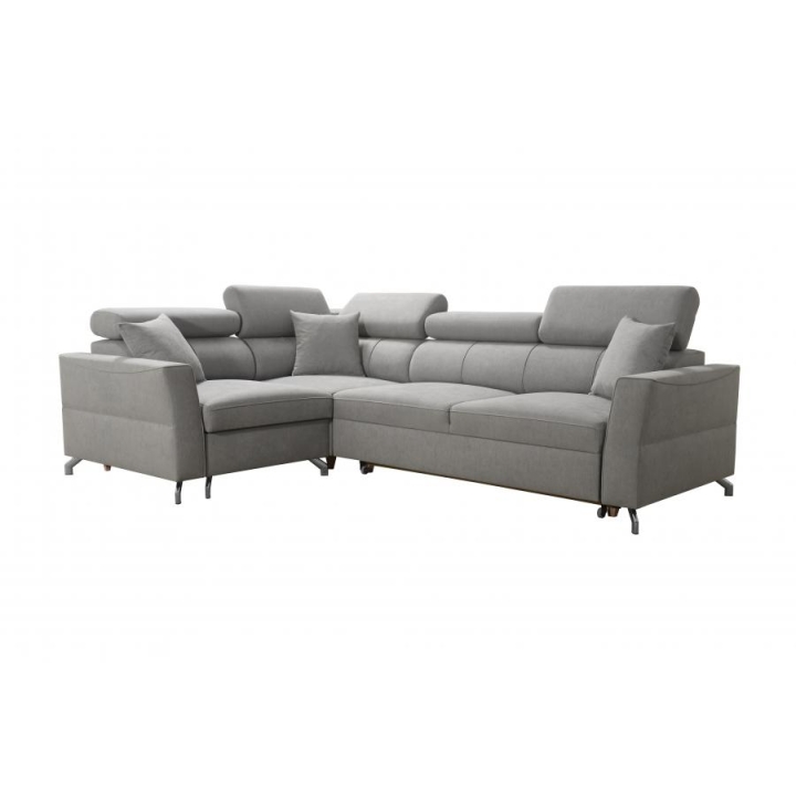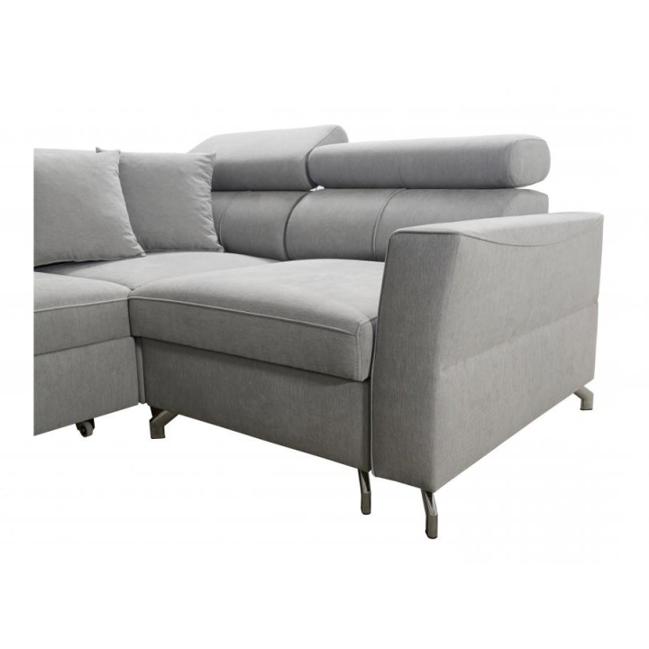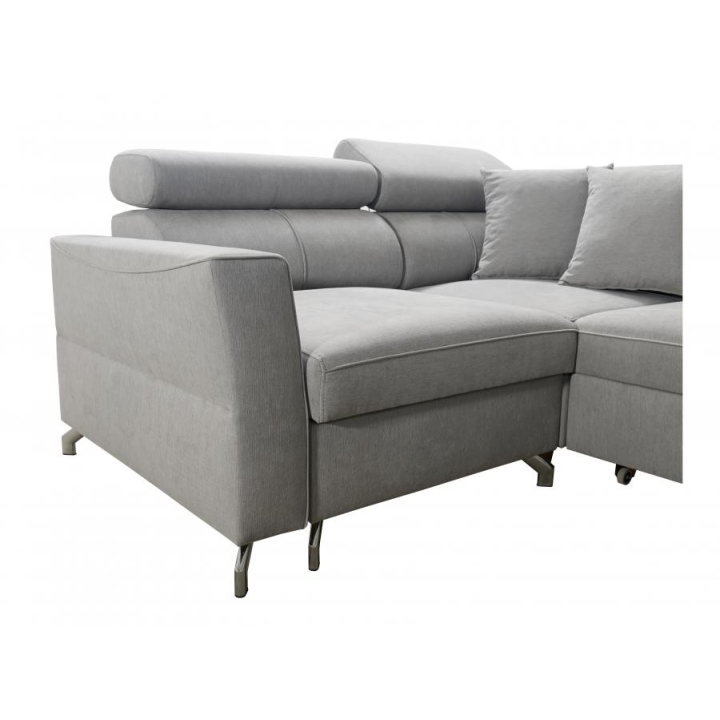 Do wyboru pozostają różne warianty wykończenia dolnych elementów: przednie stopki mogą być metalowe (chrom lub czarny mat) albo drewniane w kolorach czarnym, białym, olcha, venge i buk. Tylne stopki również oferują wersje drewniane w tych samych barwach, a dodatkowo opcję chromowaną za dopłatą. Dzięki rozbudowanemu konfiguratorowi możliwe jest dopasowanie tapicerki do indywidualnych preferencji estetycznych; do wyboru pozostają dziesiątki tkanin o różnych fakturach, kolorach i właściwościach, co pozwala z łatwością wpisać narożnik w zamierzony koncept aranżacyjny. Mebel oferuje nie tylko wygodę użytkowania, ale też możliwość pełnej personalizacji wizualnej.